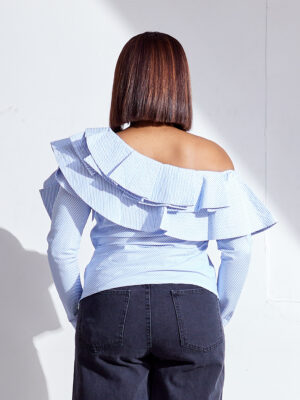 (2FOR30K) POG BLUE STRIPE PLEATED BARDOT TOP
