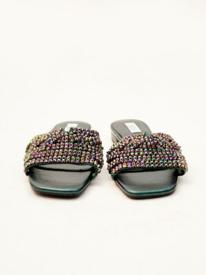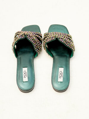 (2FOR35K) POG 158-A01 MODUPE TEAL HIGH PILE HEEL EMBELLISHED SLIPPERS