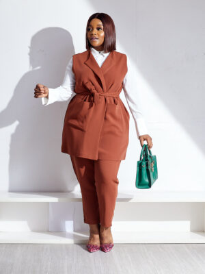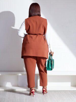 | (2FOR40K) SASHES X HIDES BROWN DOUBLE POCKET LONG JACKET & CROP PANT |