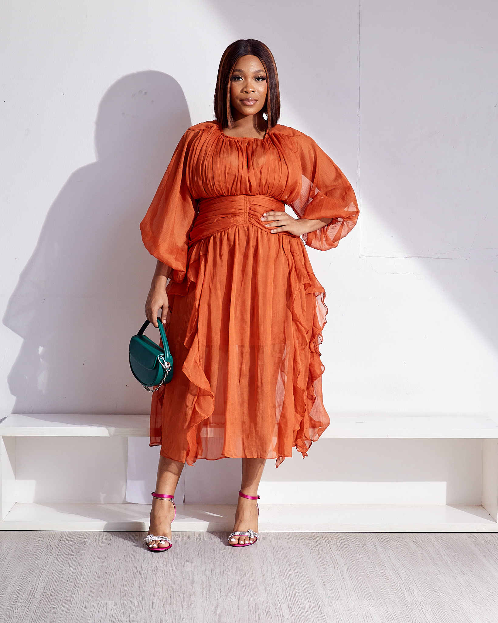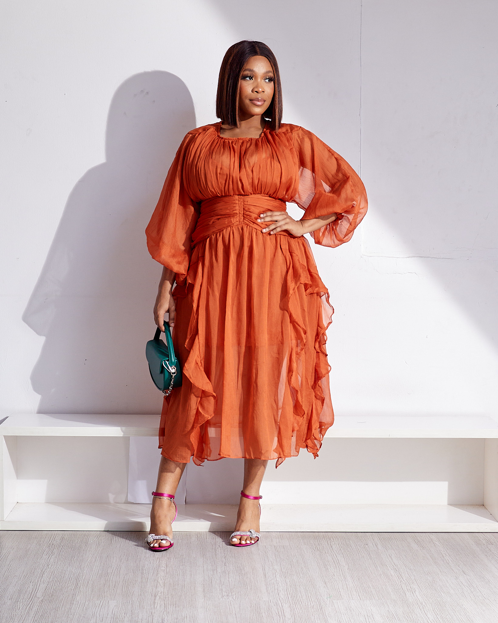 (2FOR45K)POG RUST DRAPED AND MID PULLUP DRESS