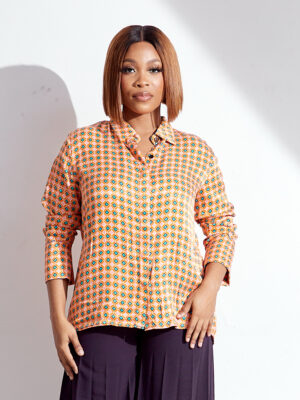 (BARGAIN SHOP) OOS ORANGE DIAMOND PRINT SHIRT