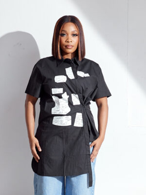 (BARGAIN SHOP)CYARD BLACK DESCRIPTION DETAIL BOX SHIRT