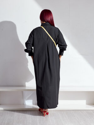 | (BARGAIN SHOP)FAME BLACK DOUBLE POCKET OVERSIZED SHIRT DRESS |