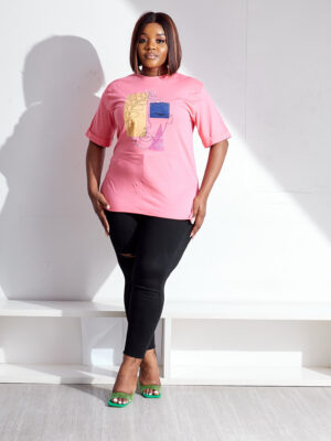 | (BARGAIN SHOP)KLIP PINK FACE WITH BLINGS TEE |