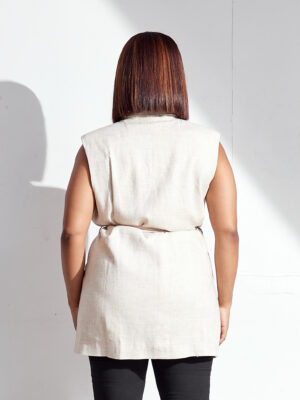 | (BARGAIN SHOP)LANVI BEIGE LINEN SLEEVELESS JACKET |