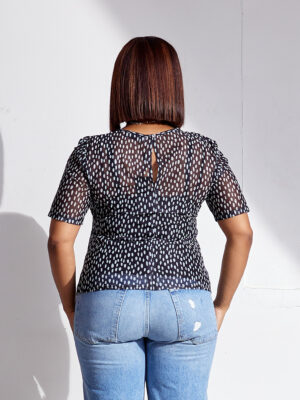 | (BARGAIN SHOP)LANVI BLACK POLKADOT MESH TOP |