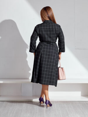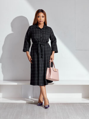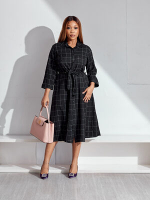 (BARGAIN SHOP)MARINAK BLACK GRID BELTED SHIRT DRESS
