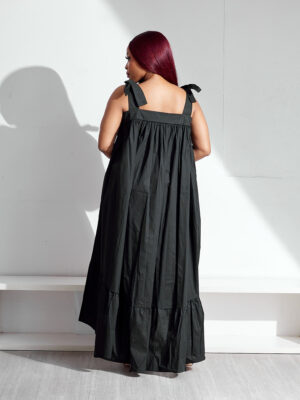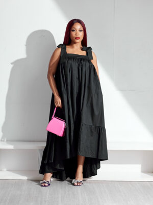 | (BARGAIN SHOP)POG BLACK SHOULDER TIE DEEP HEM FLUTE SWING TUNIC |