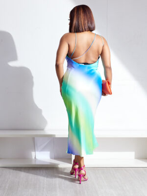 | (BARGAIN SHOP)ZR RAINBOW TYE PRINT THIN STRAP SLIP DRESS |