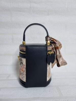 | BLACK 0088 GRAPHITTI PRINT TOP HANDLE ROUND BUCKET BAG |