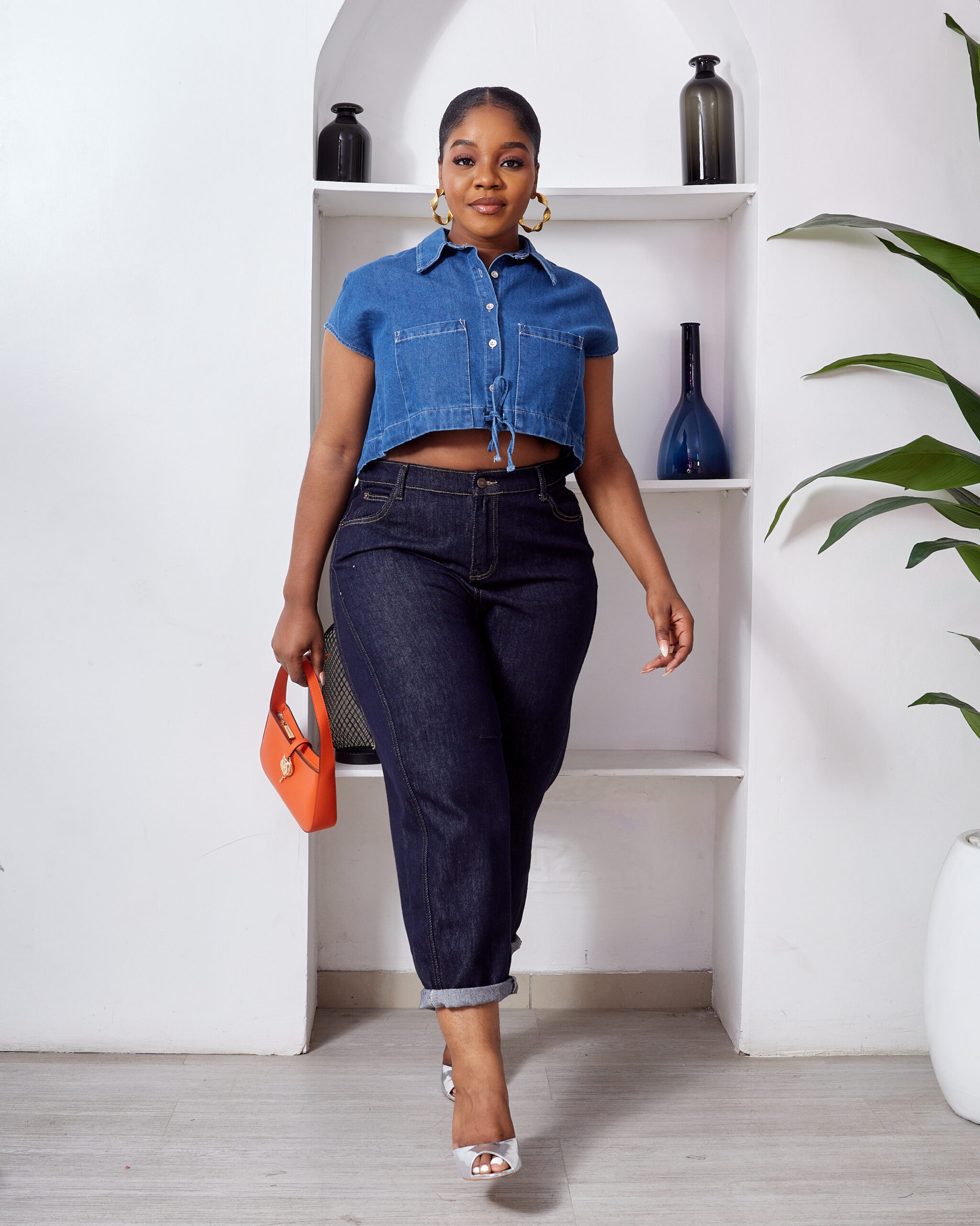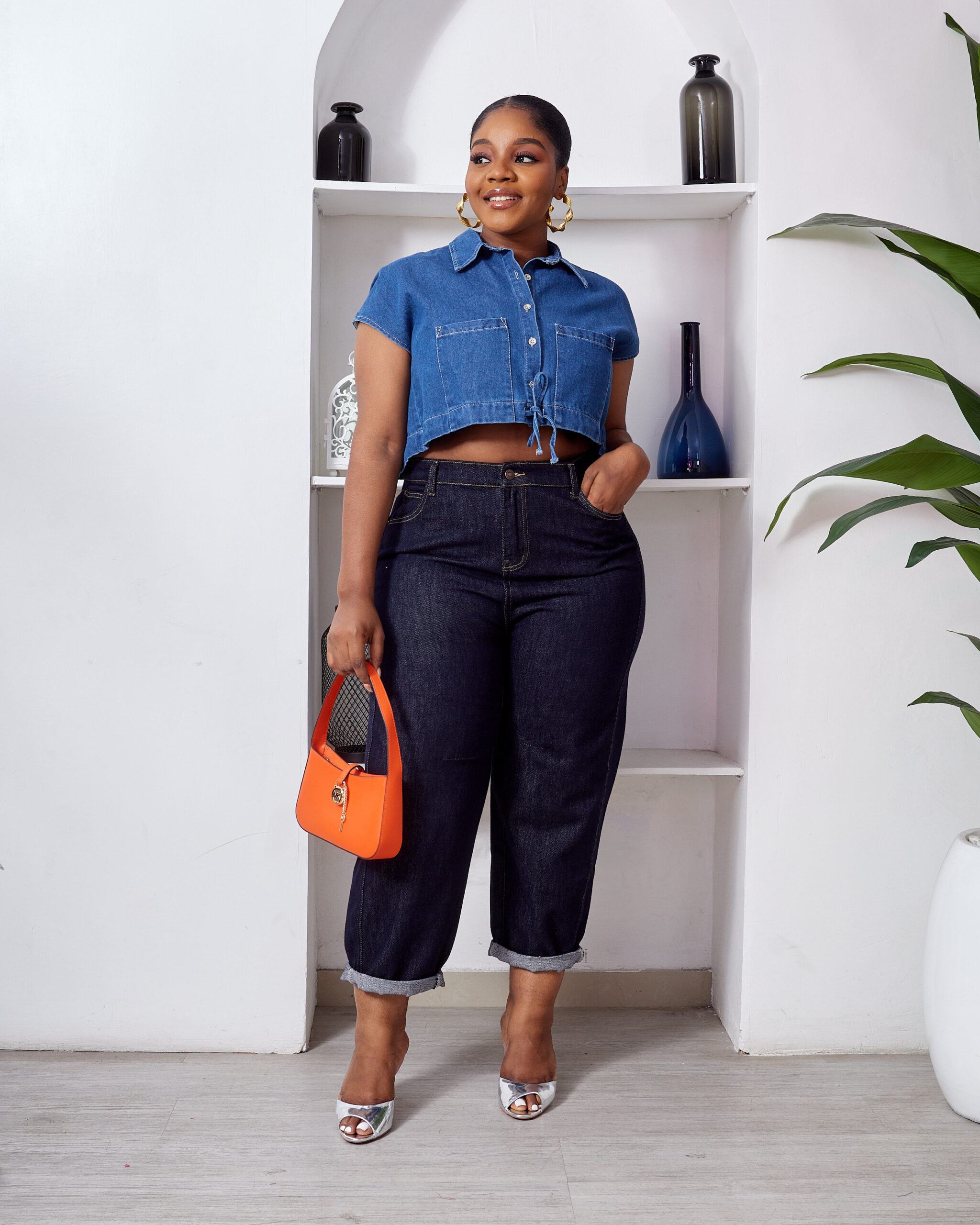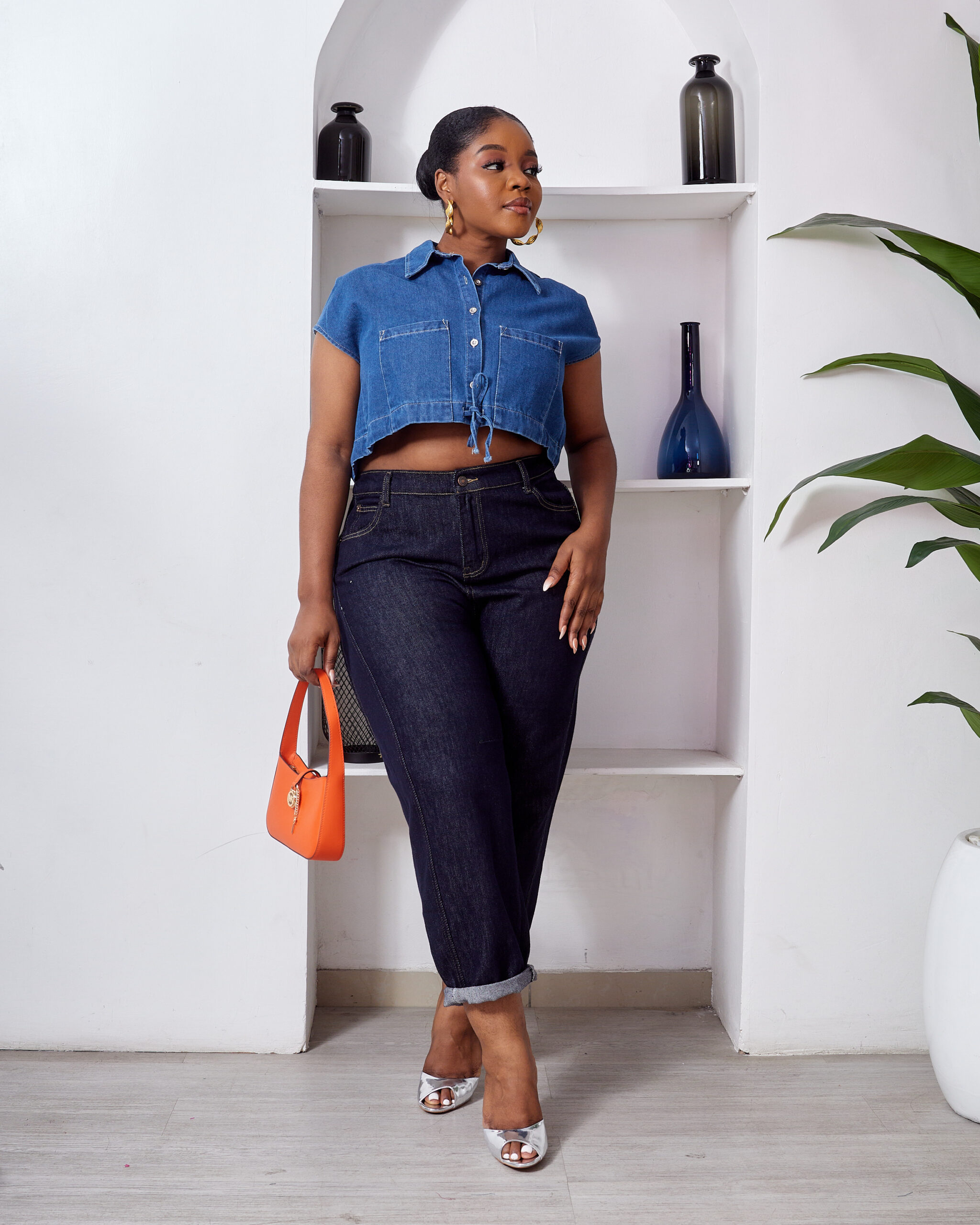 Home Clothing Jeans/Denim BLUE DENIM CROP TOP
