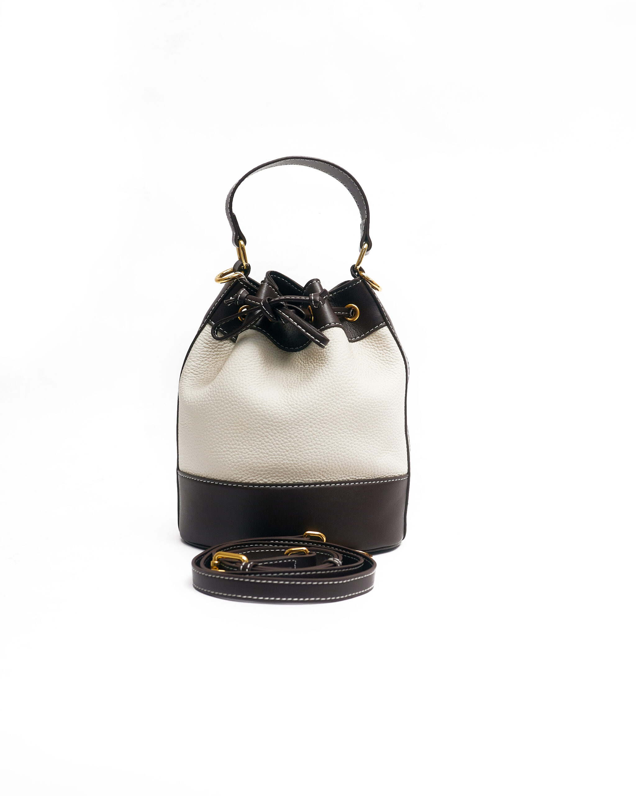 Home Bags CHOCO X IVORY PEBBLED LEATHER BUCKET BAG