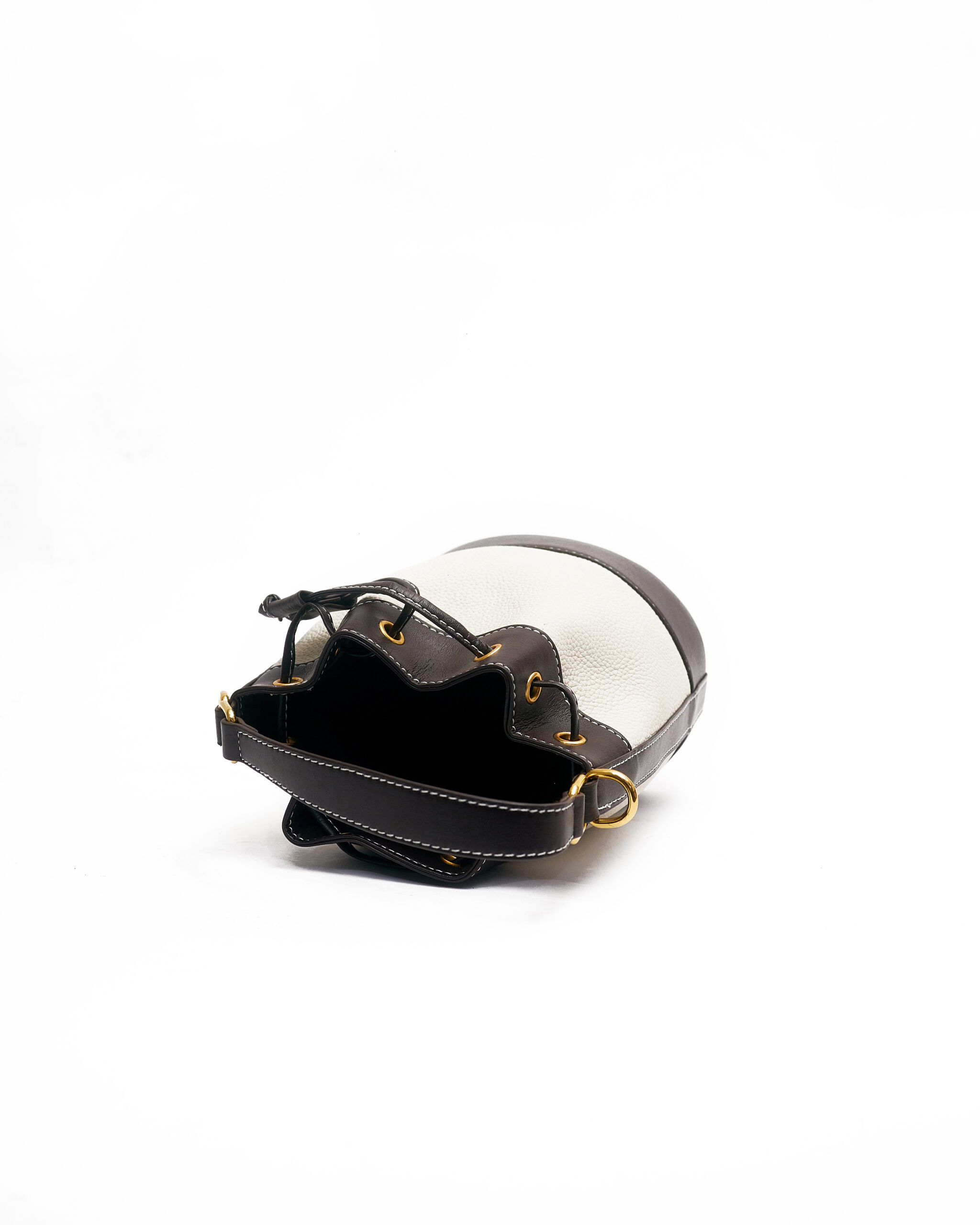 CHOCO X IVORY PEBBLED LEATHER BUCKET BAG