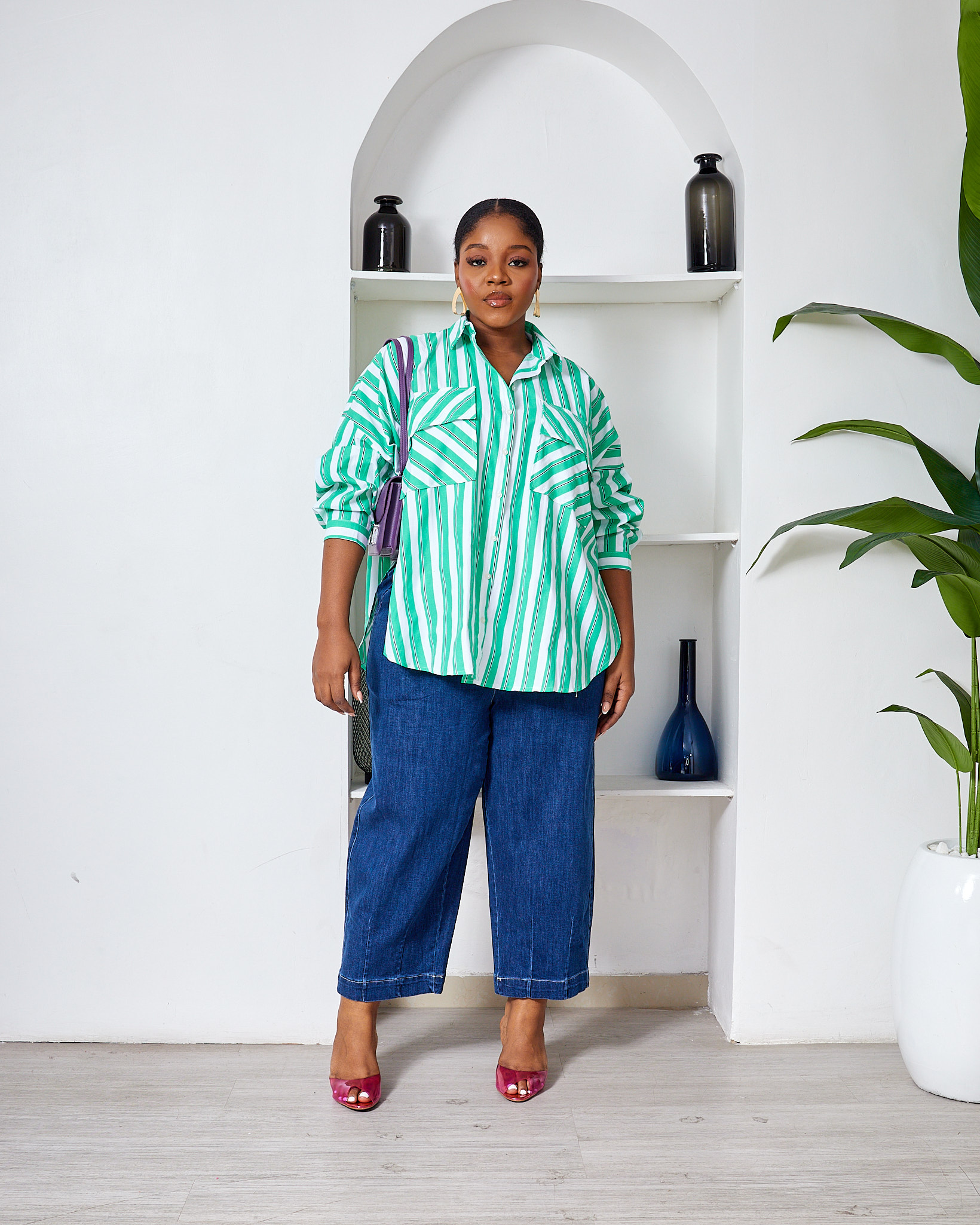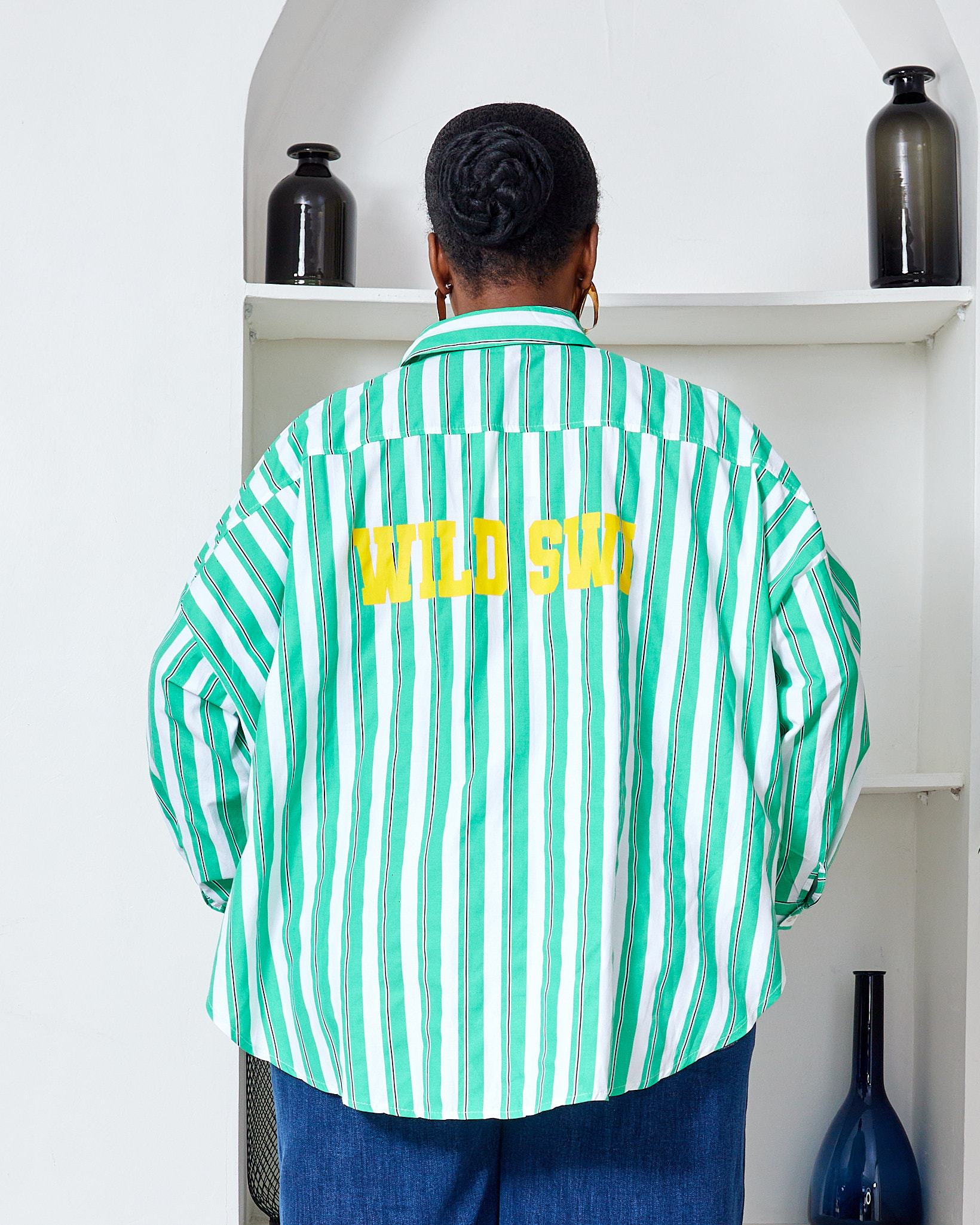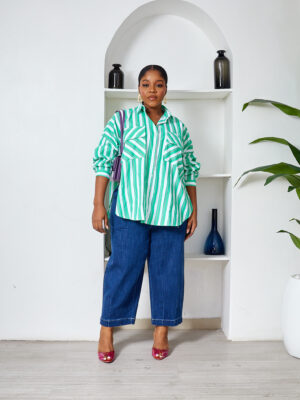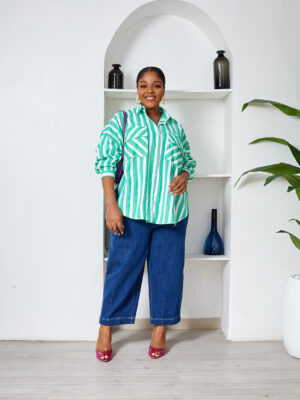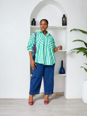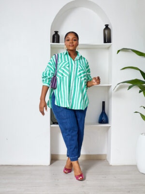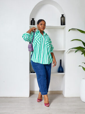 FAME GREEN BOLD STRIPE WILD SWI OVERSIZED SHIRT