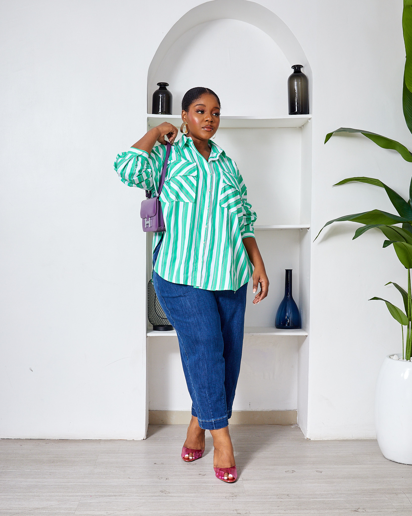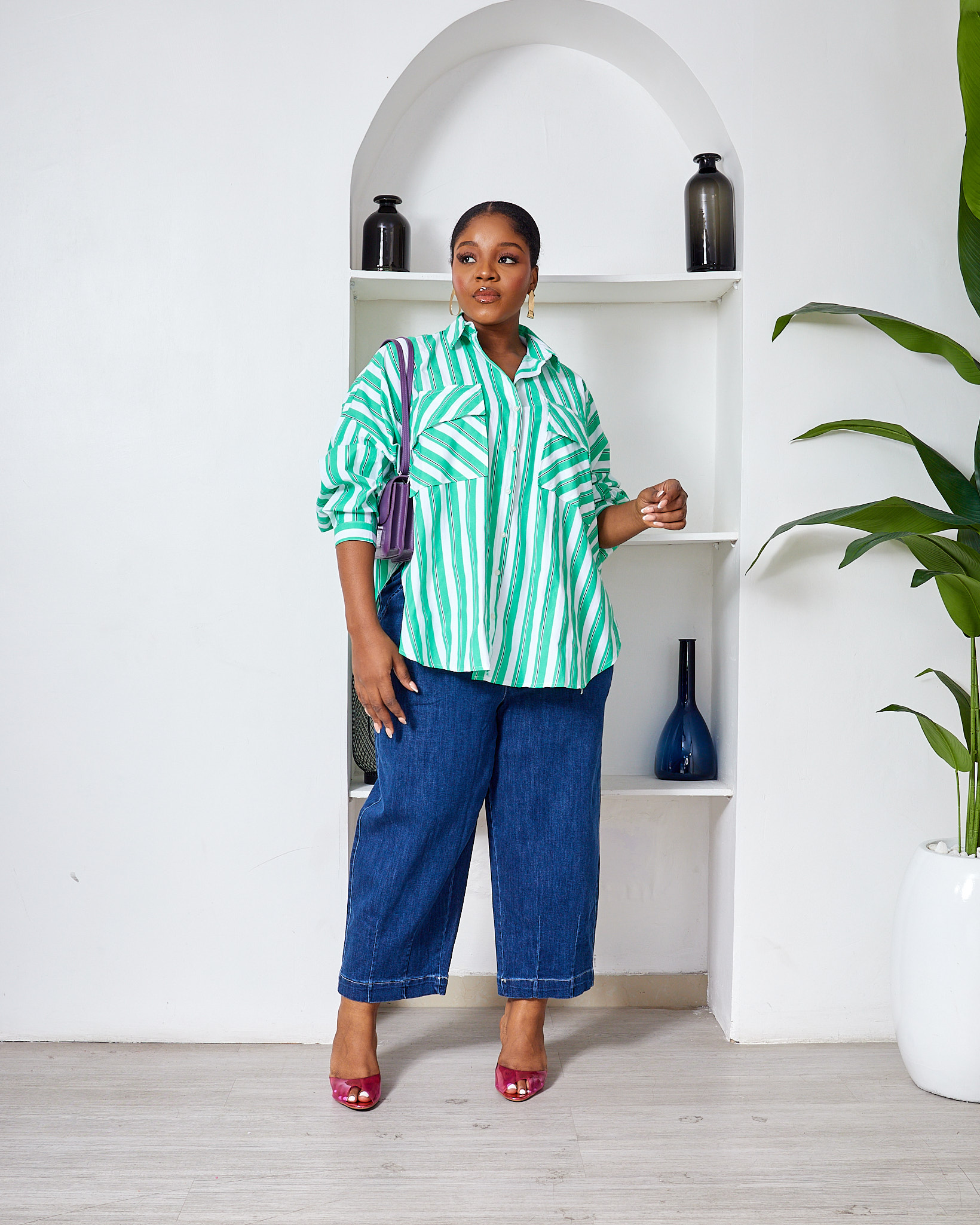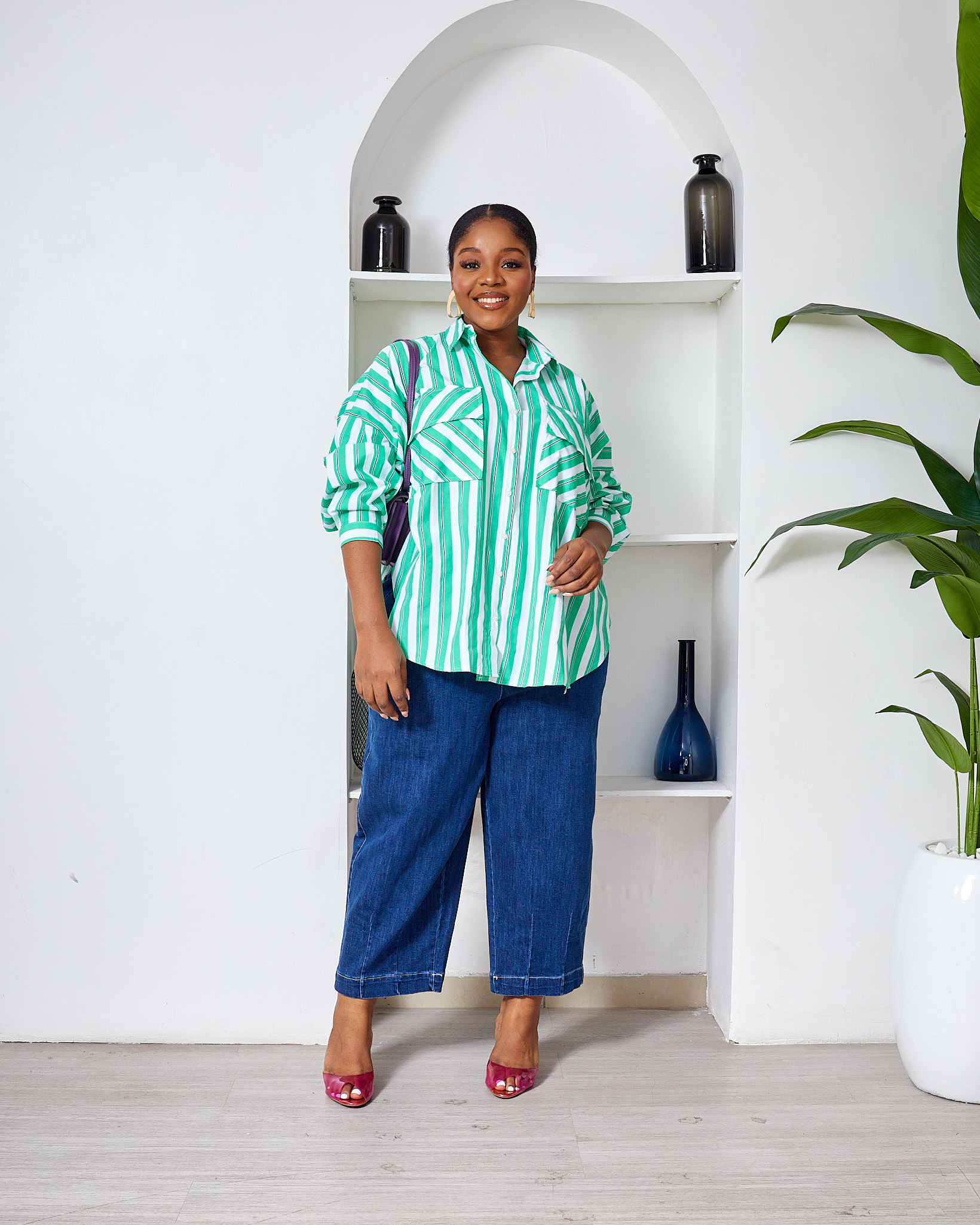 FAME GREEN BOLD STRIPE WILD SWI OVERSIZED SHIRT