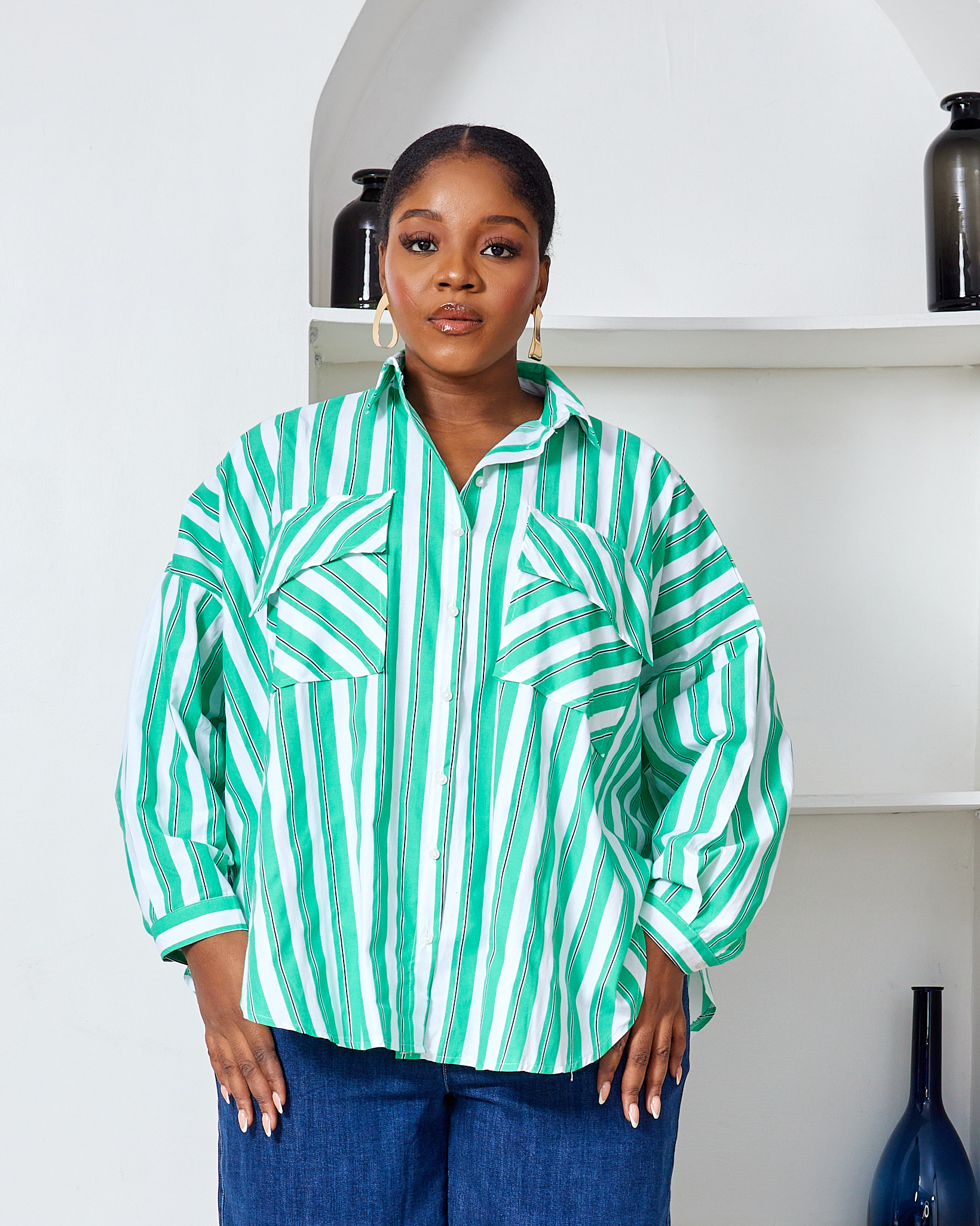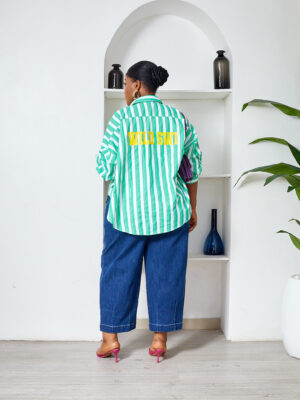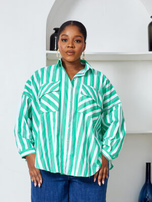 Home Clothing Shirts FAME GREEN BOLD STRIPE WILD SWI OVERSIZED SHIRT
