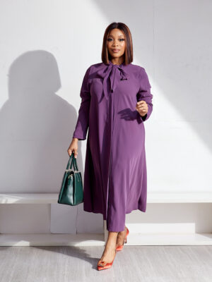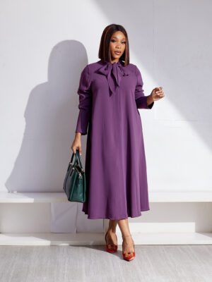 | FAMELIN AUBERGINE PUSSYBOW SWING SHIRT DRESS |