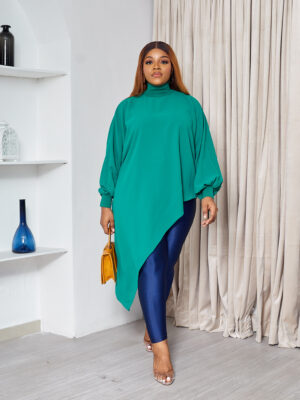 FIMK GREEN HIGH NECK SCARF DETAIL LONG TOP
