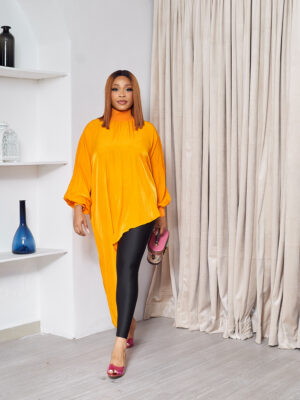 FIMK ORANGE HIGH NECK SCARF DETAIL LONG TOP