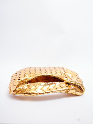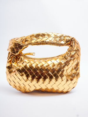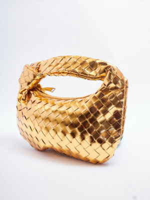 GOLD MATTE KNOTTED WOVEN HALF CIRCLE BAG