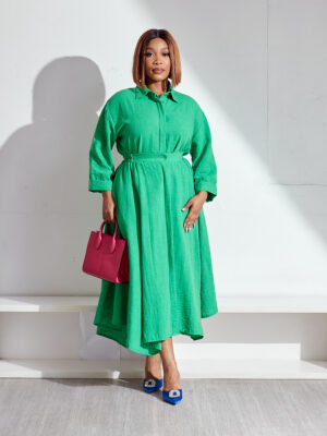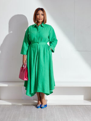 Home Clothing Skirts/Shorts HOTFASH GREEN CRINKLED LINEN SHIRT & SKATER SKIRT SUIT SET