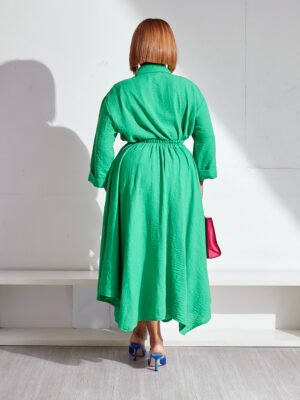 HOTFASH GREEN CRINKLED LINEN SHIRT & SKATER SKIRT SUIT SET