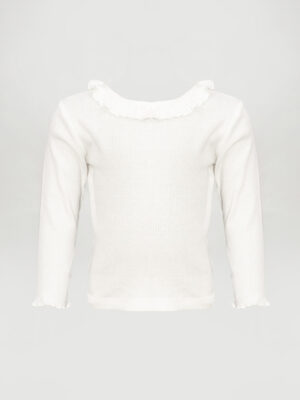 KOTON KIDS IVORY RIB BONE FRILL DETAIL LONGSLEEVE TOP