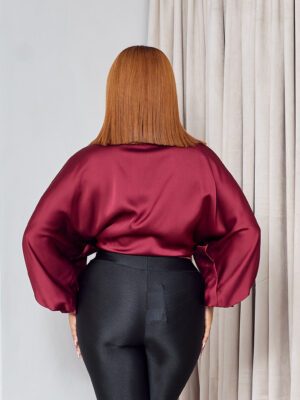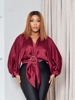 LILROSE BURGUNDY SILK ROUND RING BLOUSE