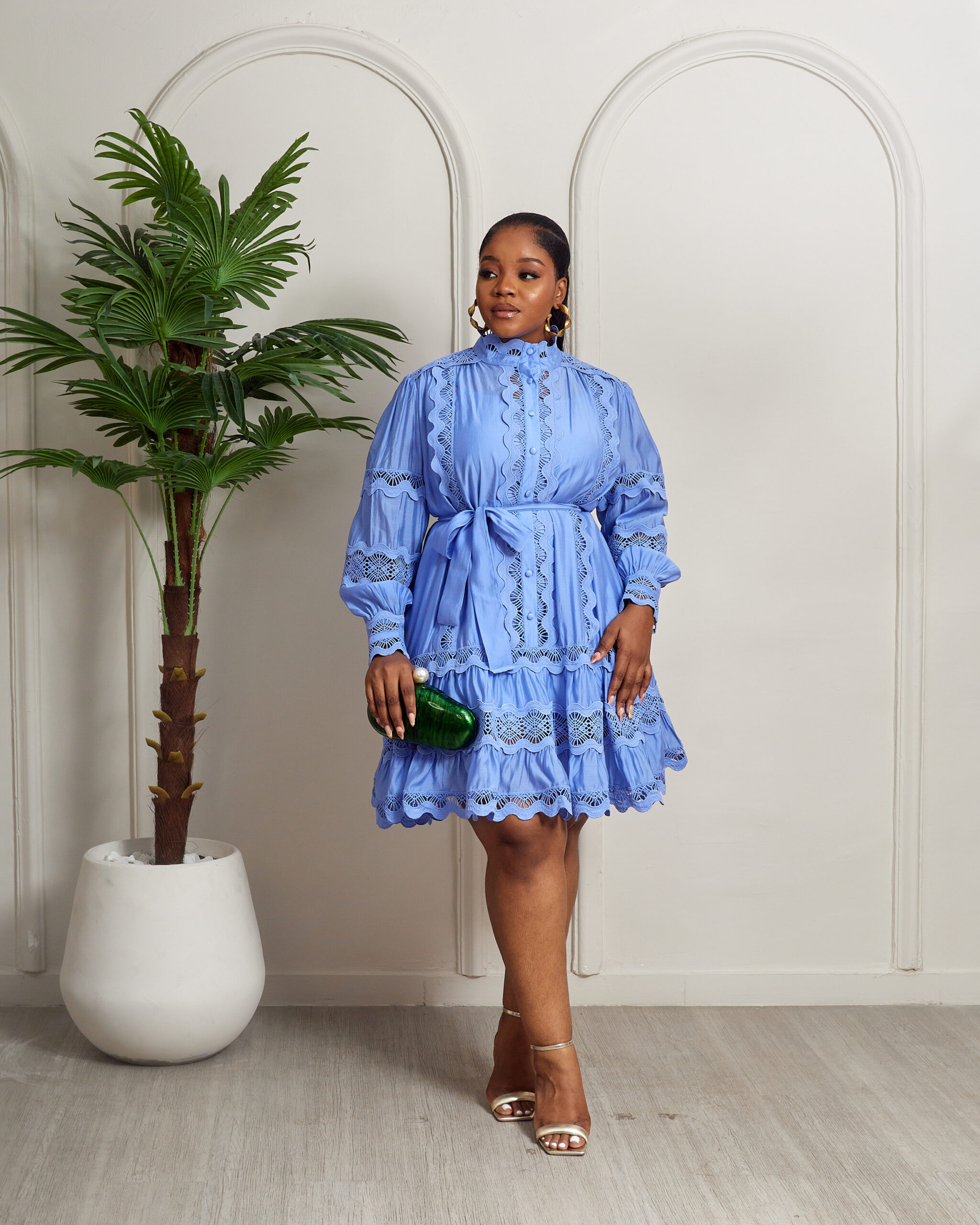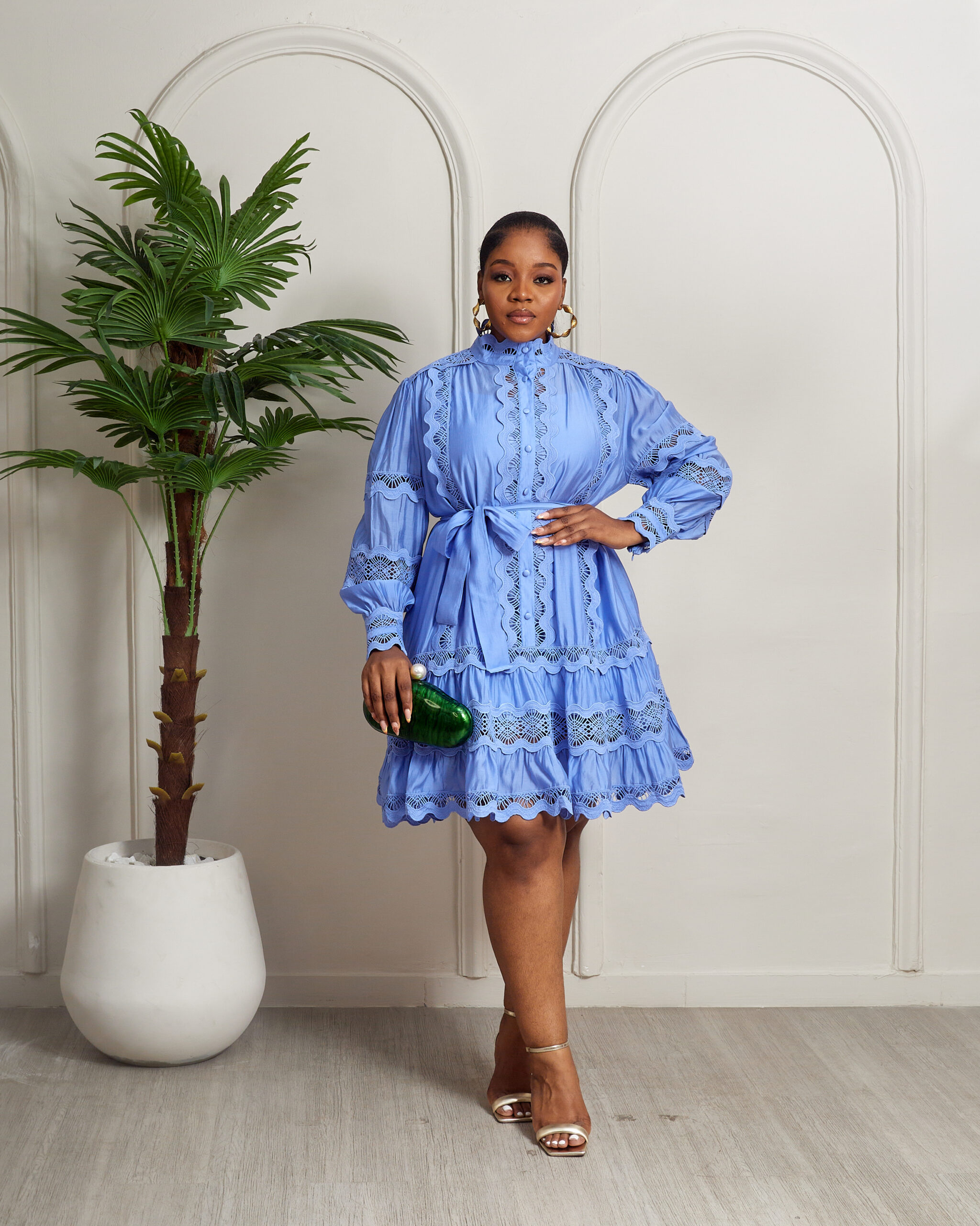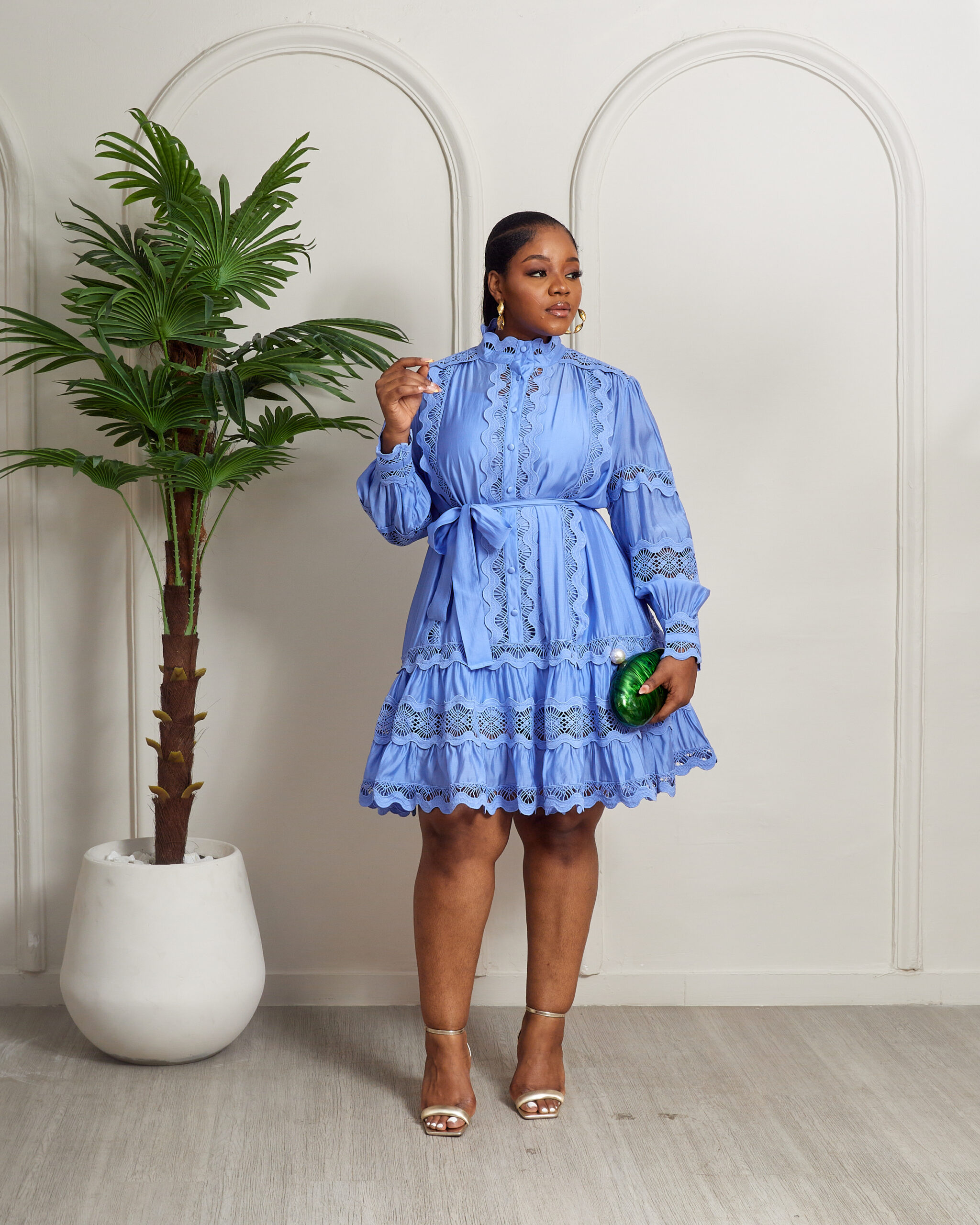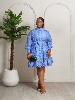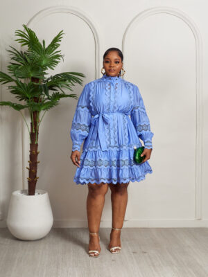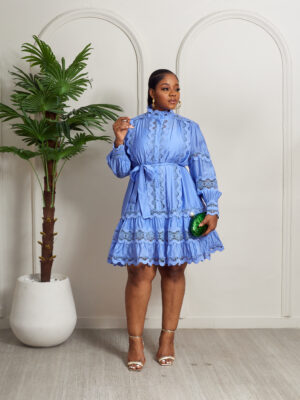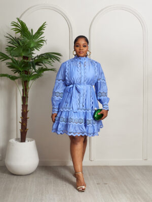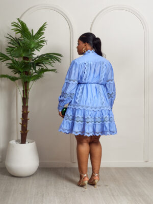 MERMAN BLUE LACE TRIMMINGS INSERT PEPLUM HEM SHIRT DRESS