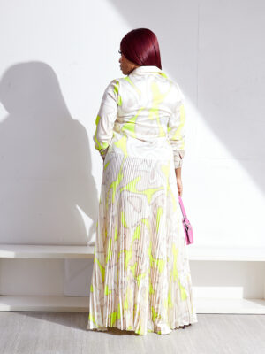 | MYRED BEIGE X NEON PLEATED HEM MAXI SHIRT DRESS |