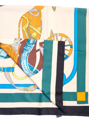 NAVY/BEIGE PONY X HORSE COLLAR PRINT SCARF