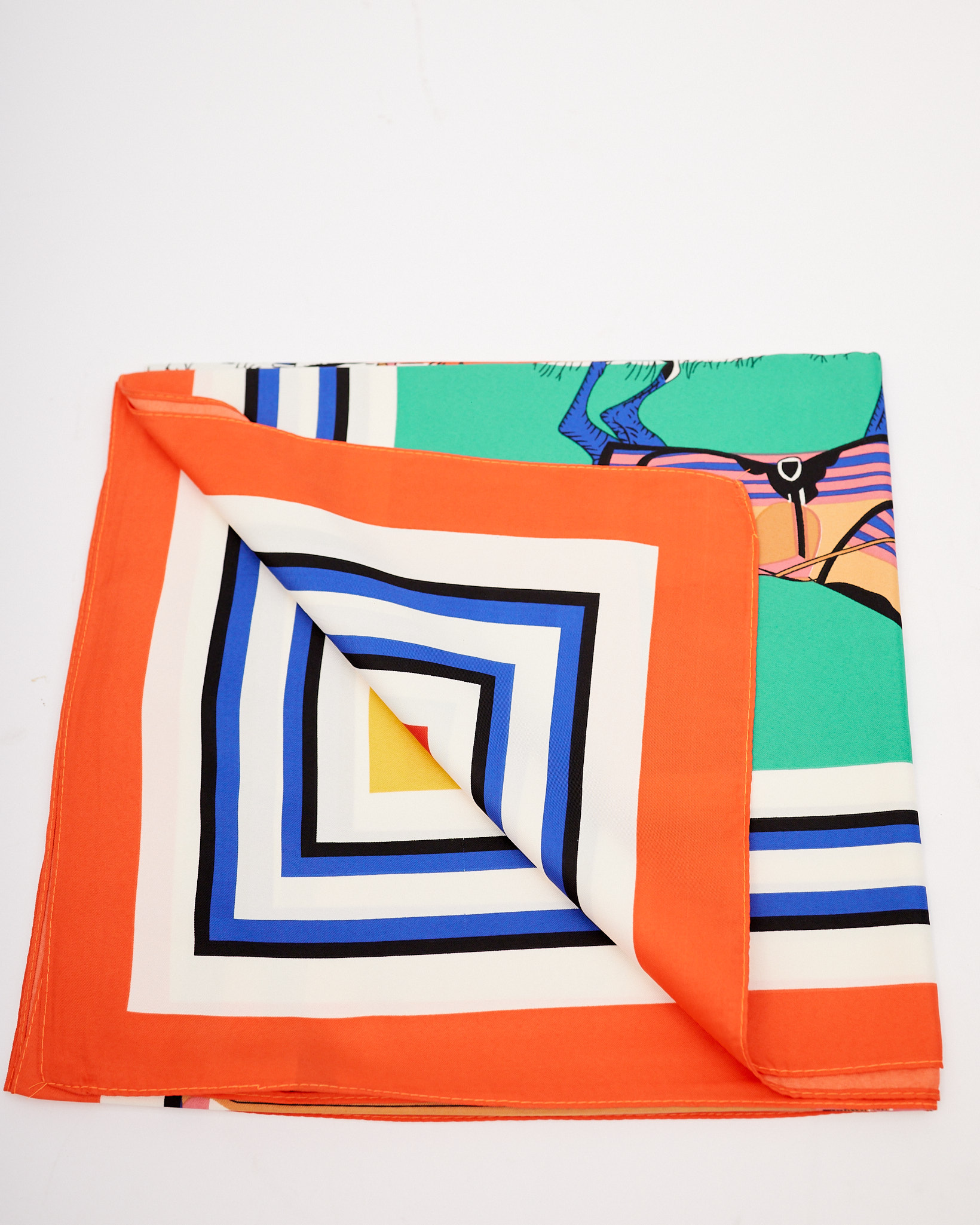 | ORANGE BORDER WITH PONYS IN BOXES OUVERTURES SCARF |