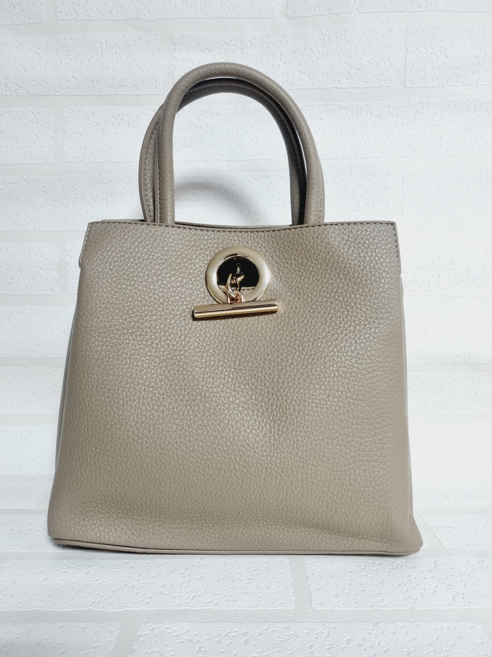 | PIYA TAUPE OVERSIZED GOLD HOOK PEBBLED HANDBAG |