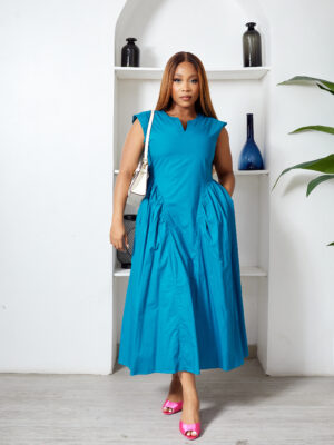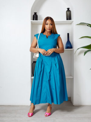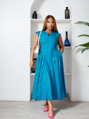 POG AQUA VNECK SIDE PLEAT DOLL DRESS