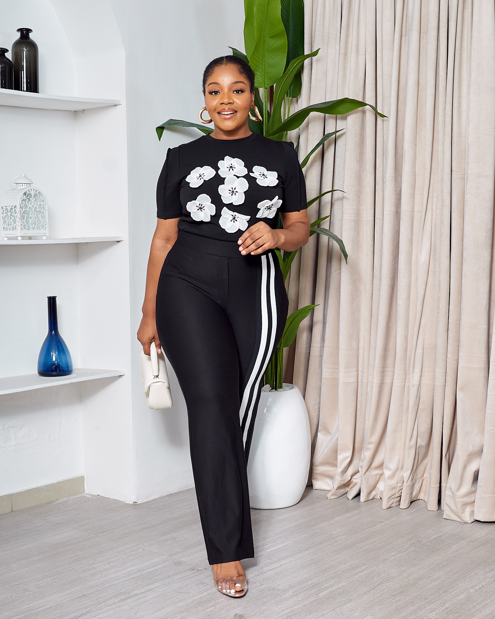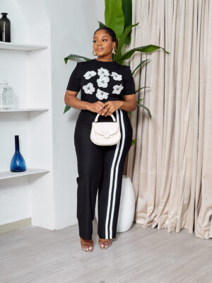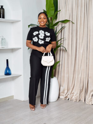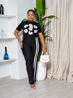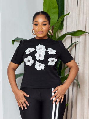 POG BLACK EMBELLISHED ROSES TEE