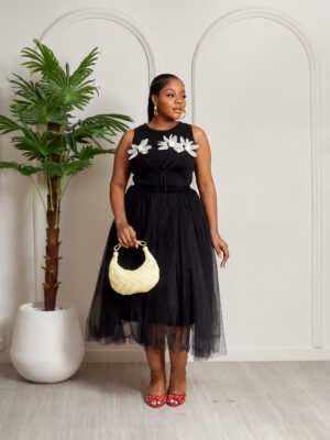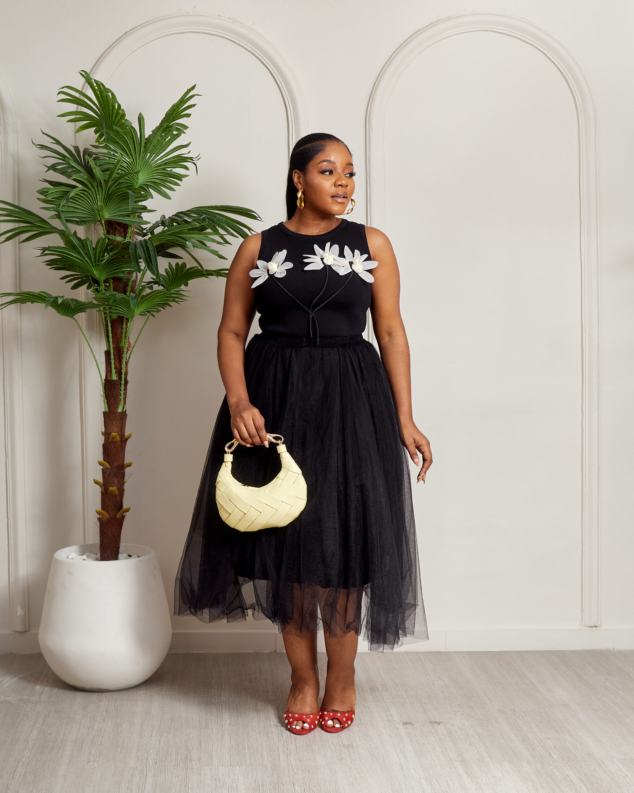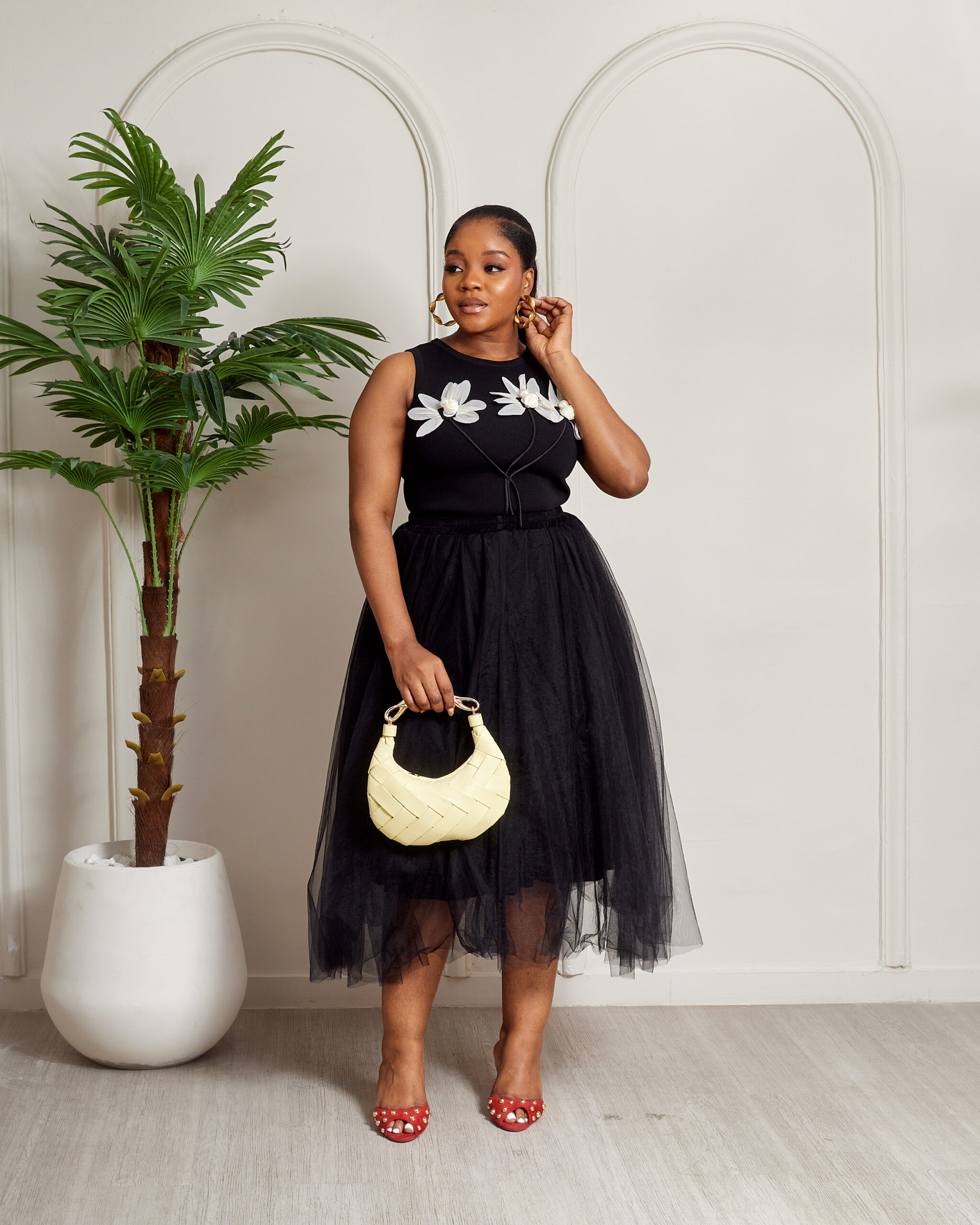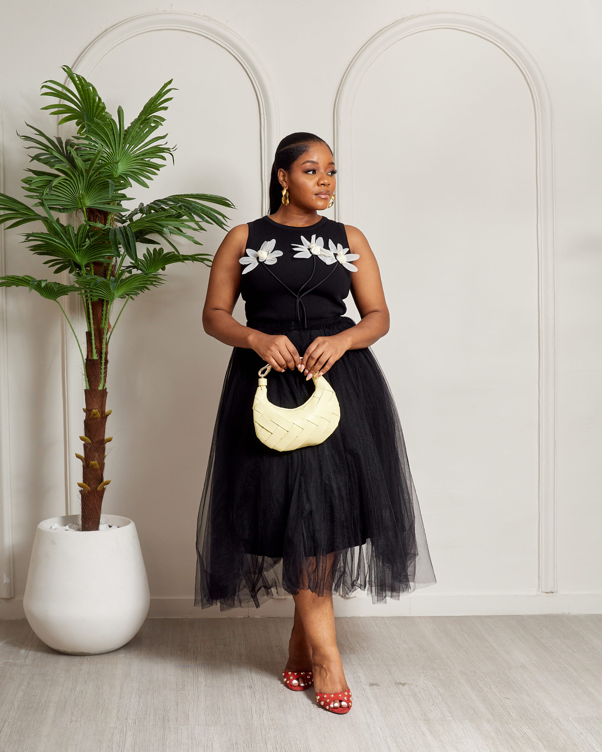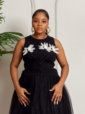 POG BLACK FLOWER TREE KNIT TANK TOP