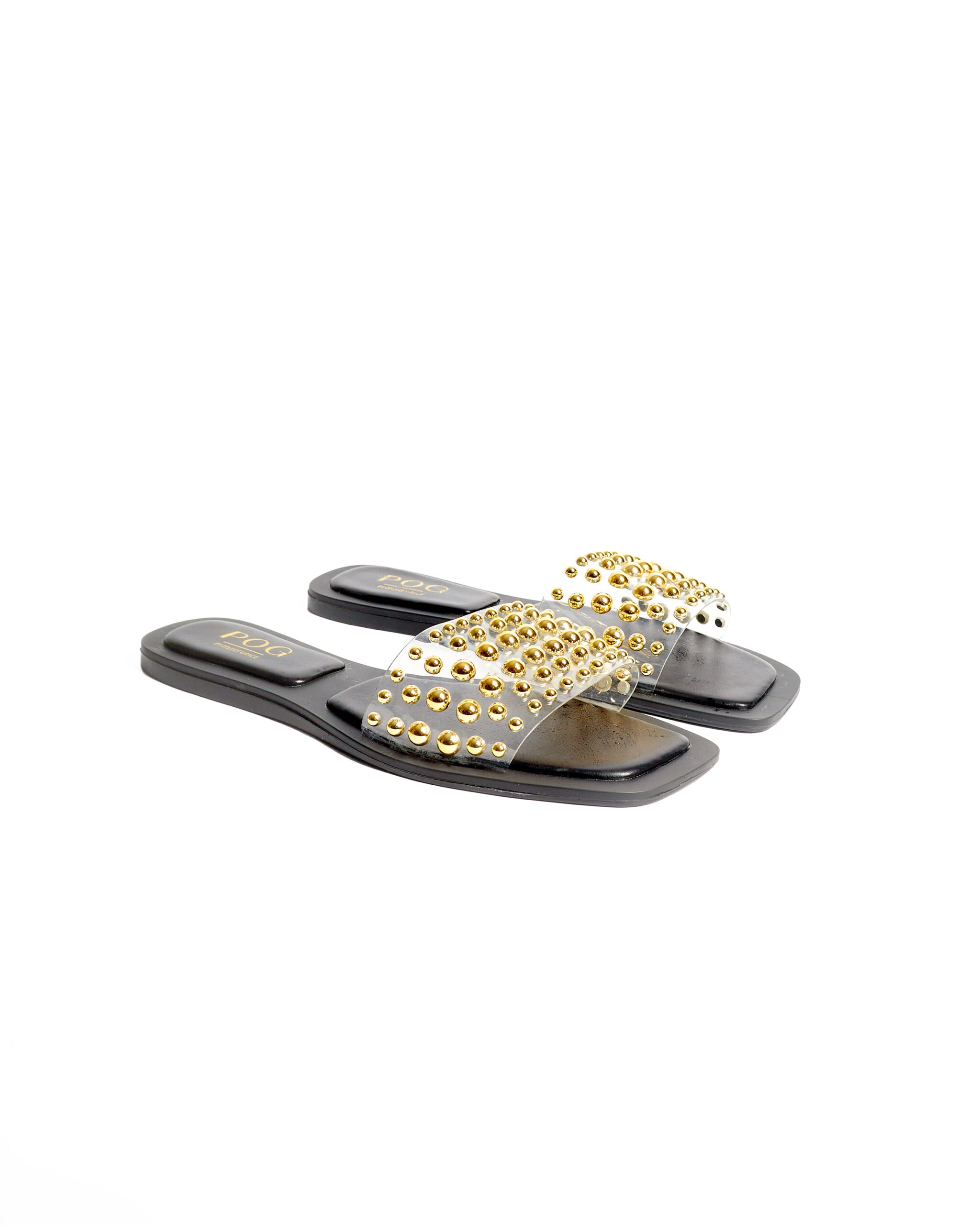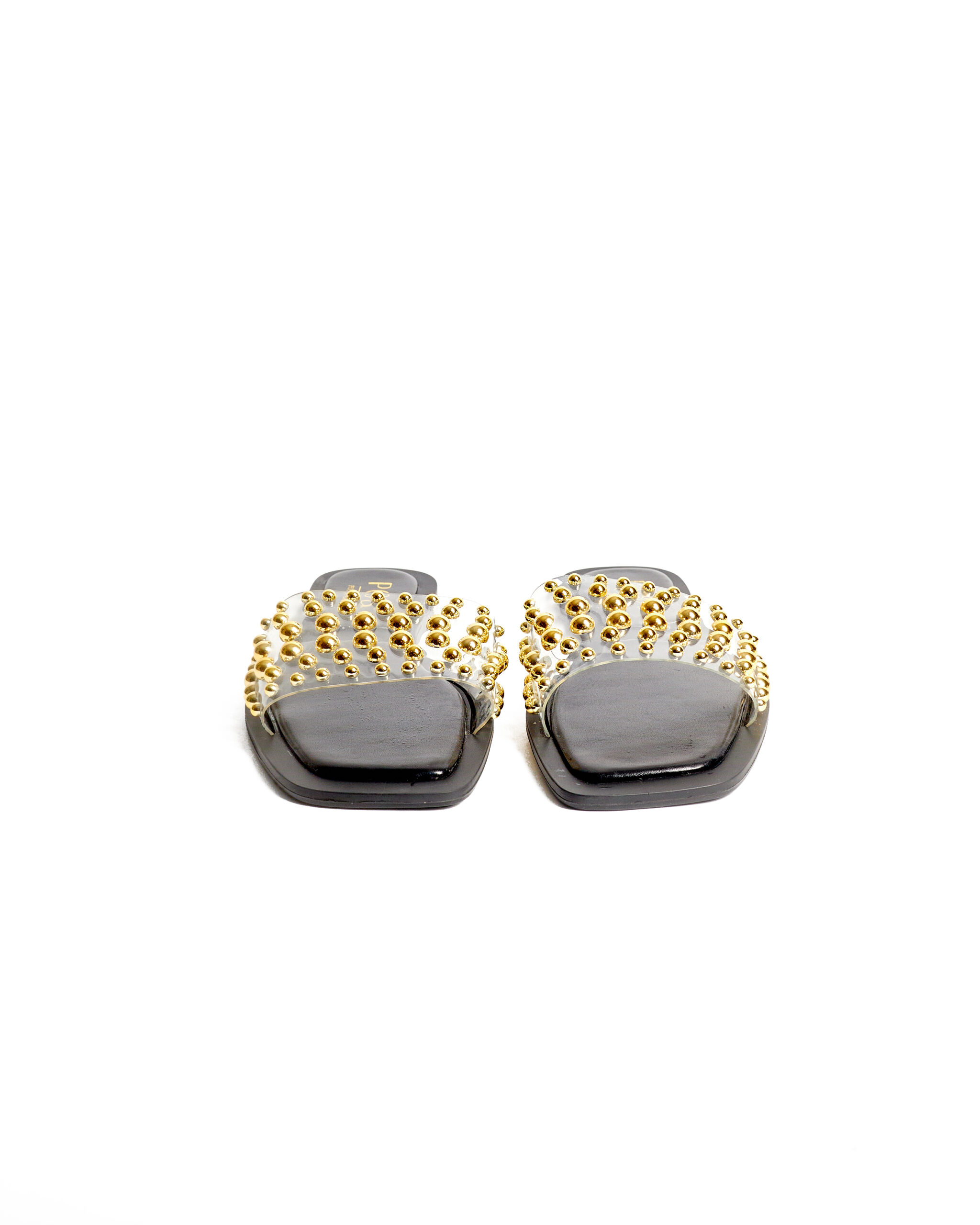 Home All products POG BLACK GOLD STUDDED E2659-1 PERSPEX SLIPPERS