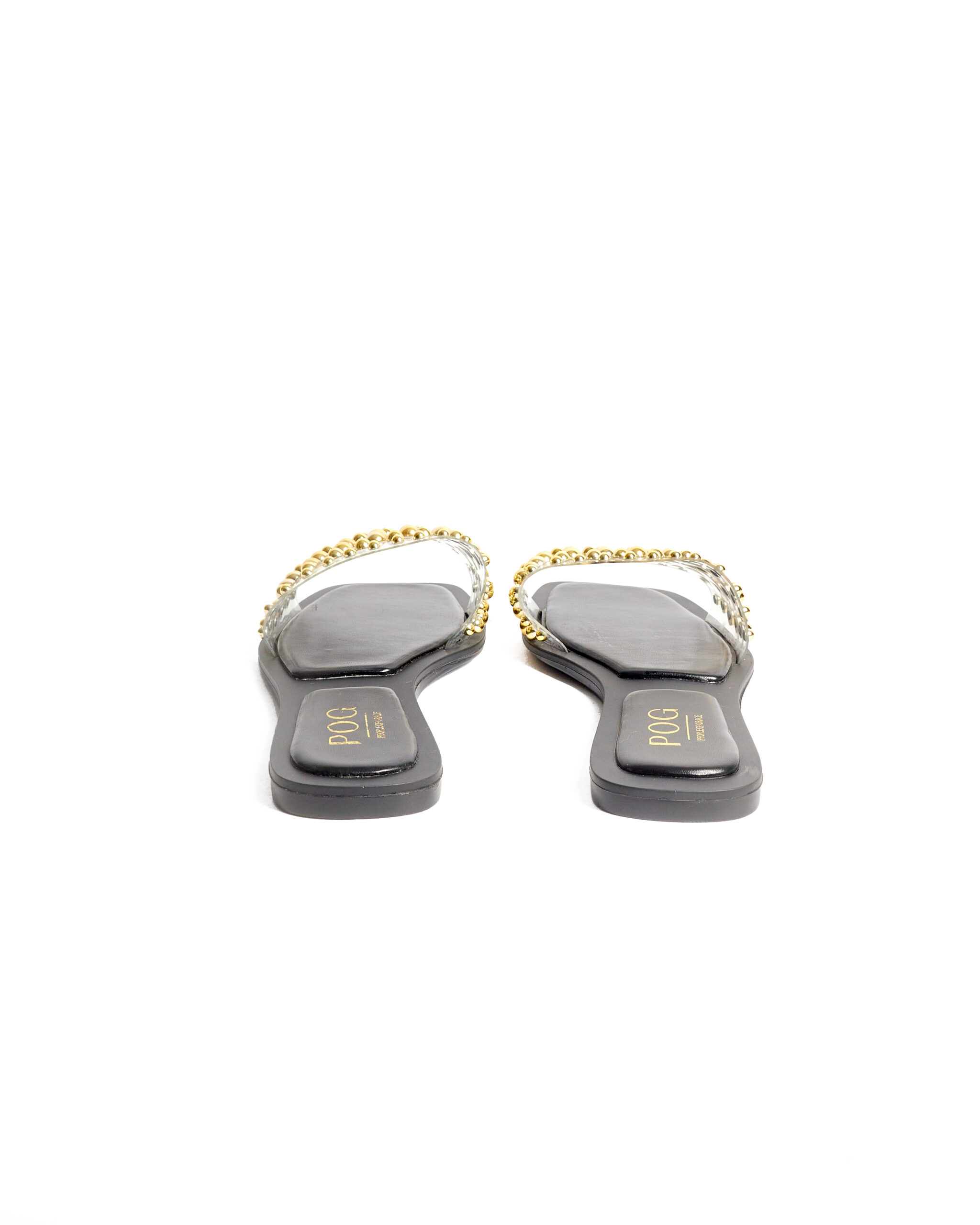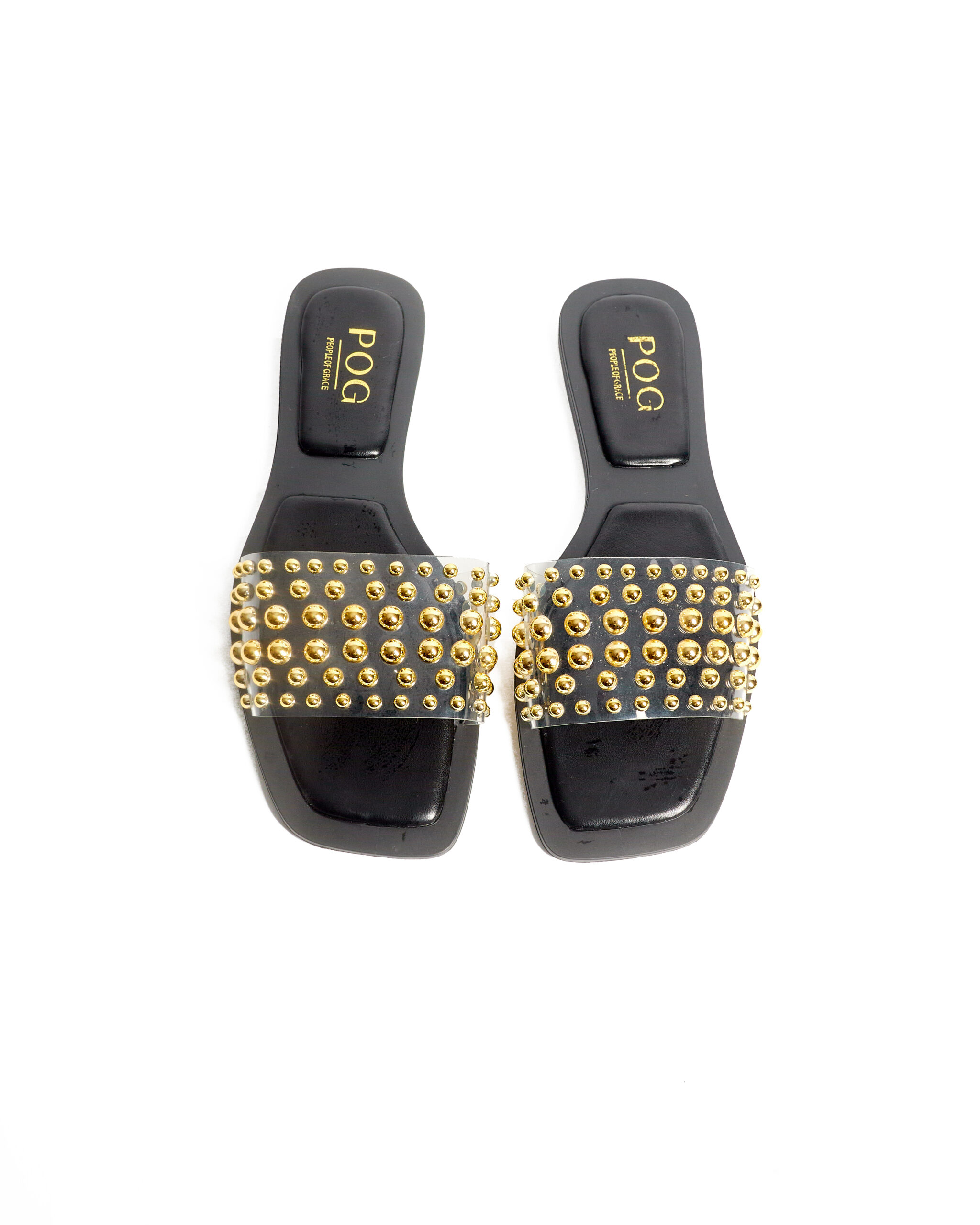 POG BLACK GOLD STUDDED E2659-1 PERSPEX SLIPPERS