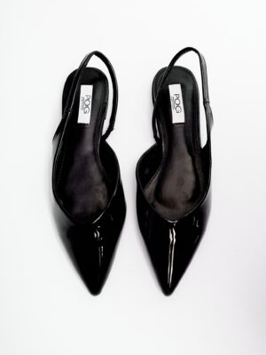 Home All products POG BLACK PATENT FLAT SLING BACK SANDAL