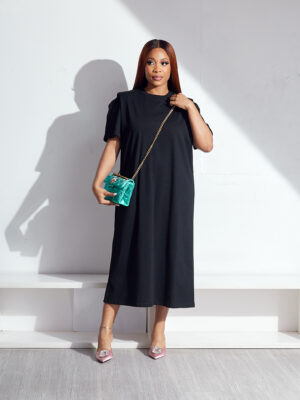 | POG BLACK SHOULDER PLEAT & PAD TEESHIRT TUNIC |