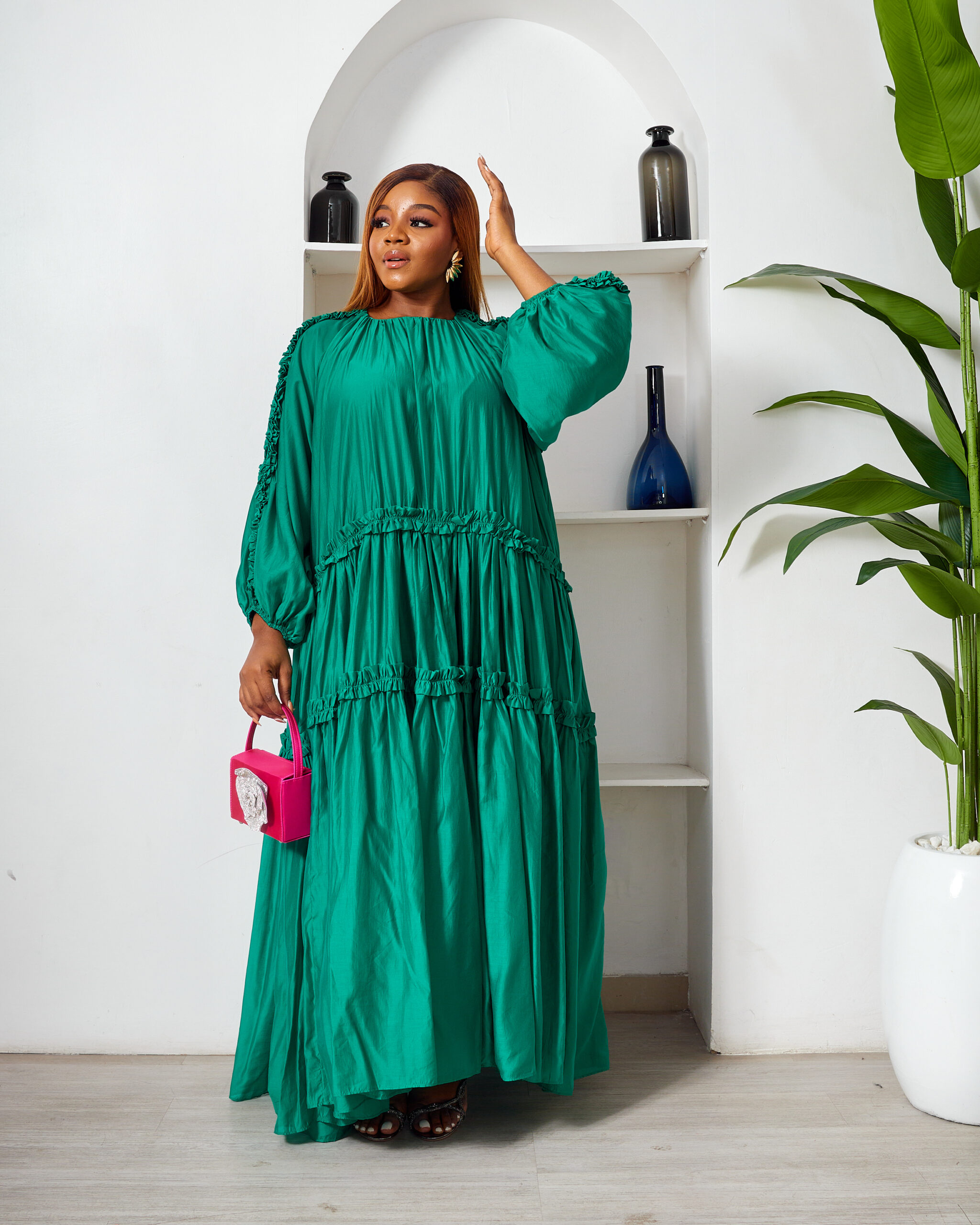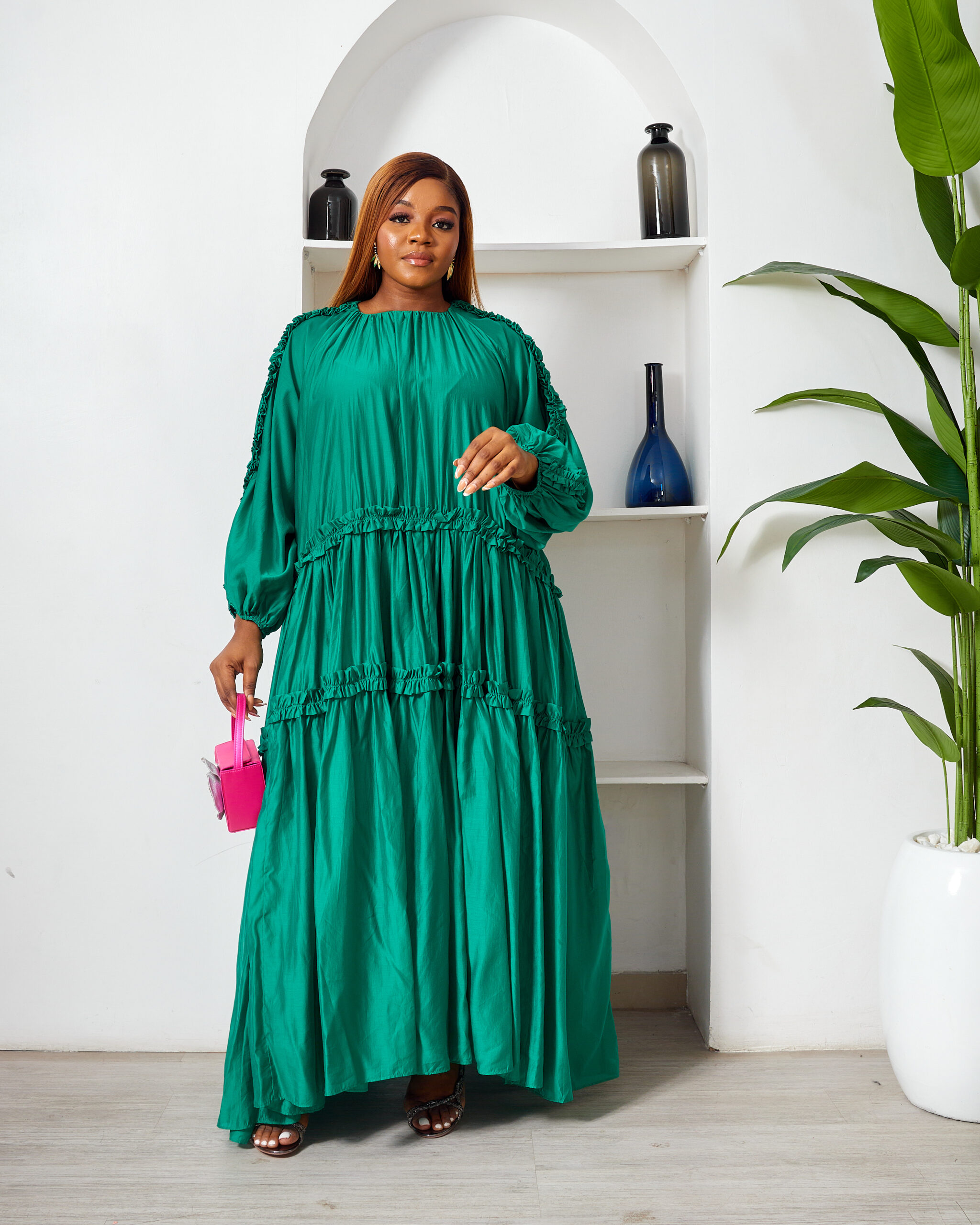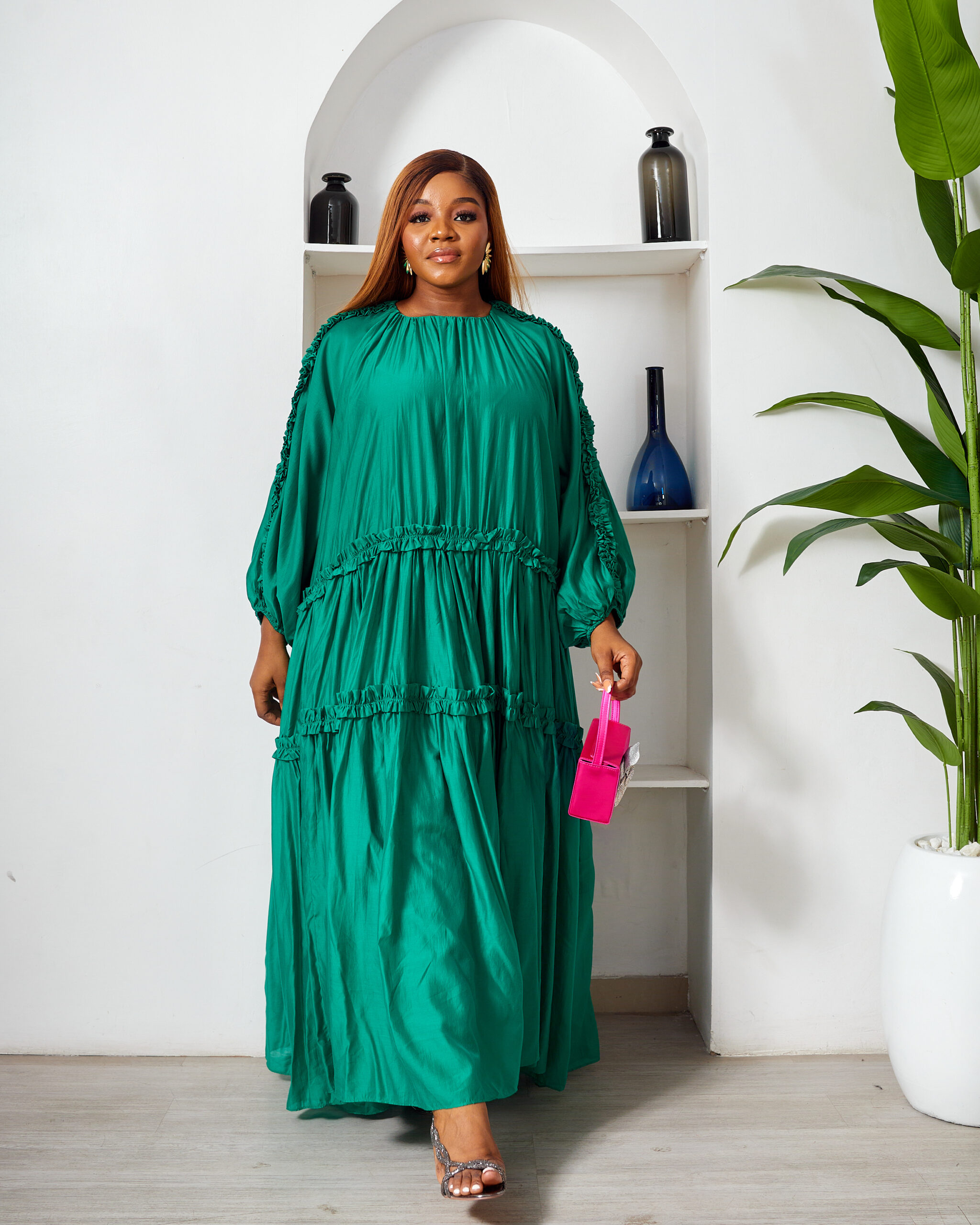 POG GUCCI GREEN OVERSIZED FRILL SWING CAFTAN