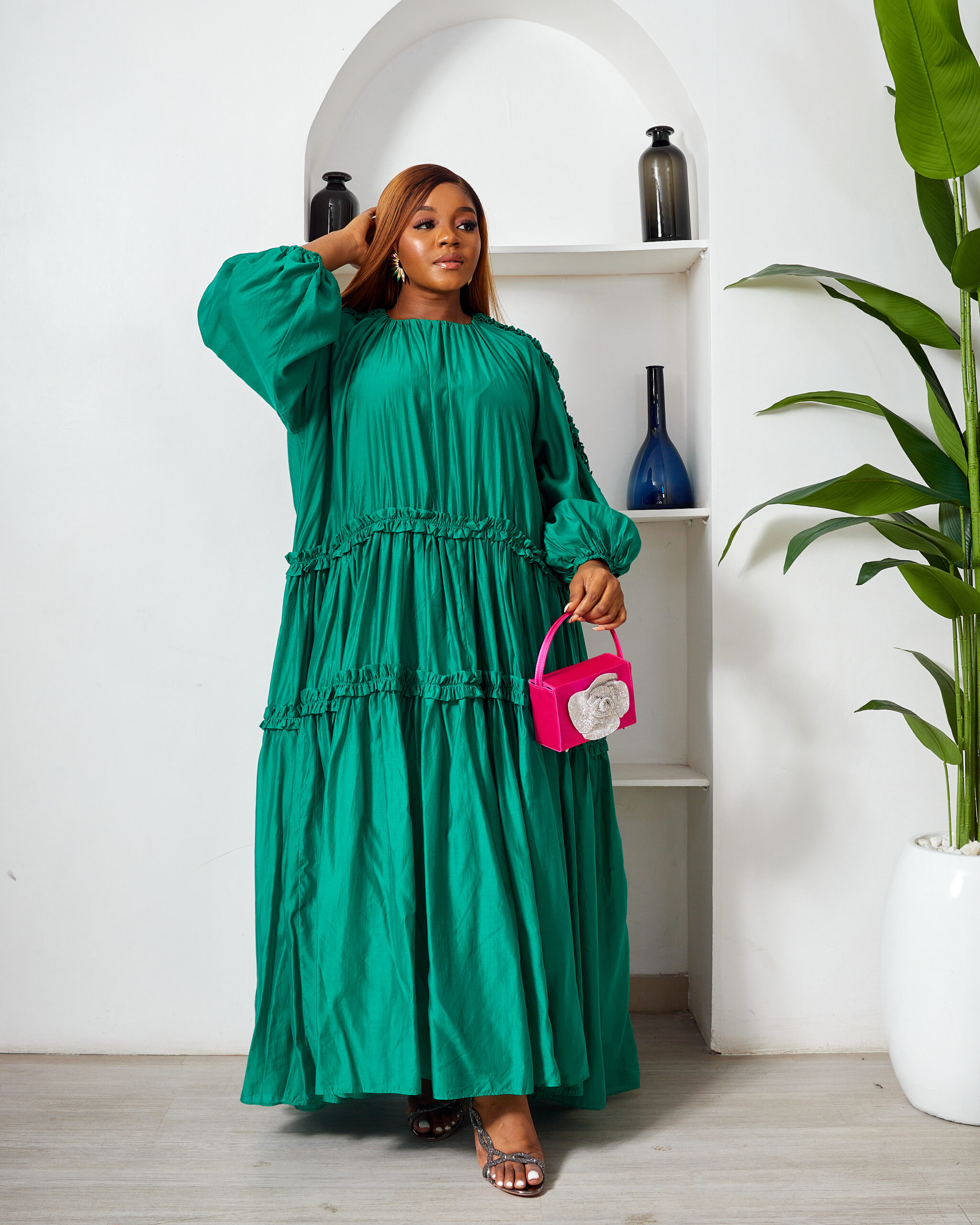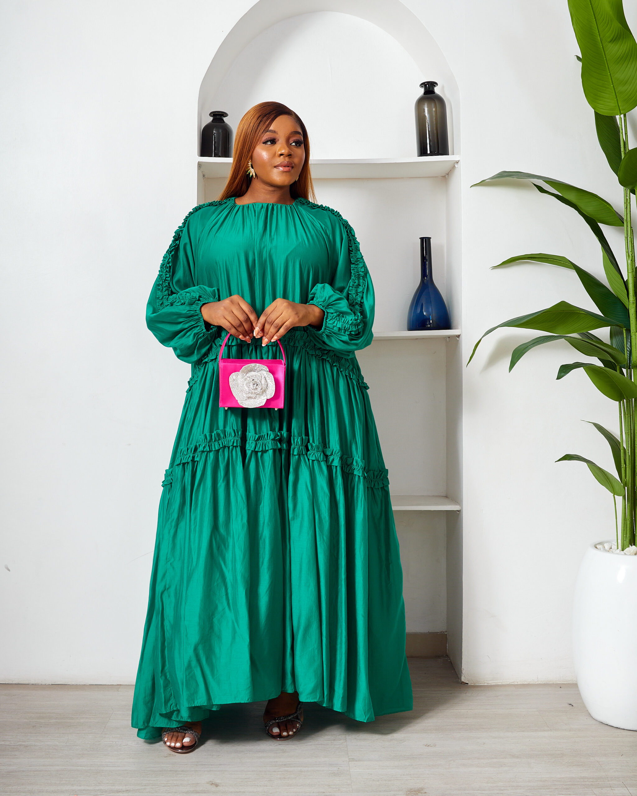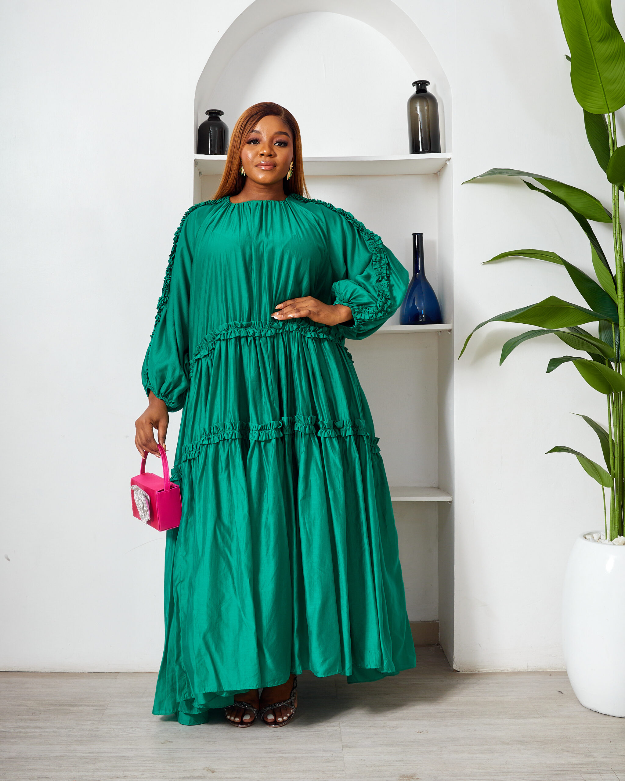 POG GUCCI GREEN OVERSIZED FRILL SWING CAFTAN