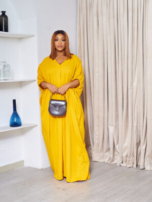 POG MUSTARD VNECK BUBBLE SLEEVE CAFTAN