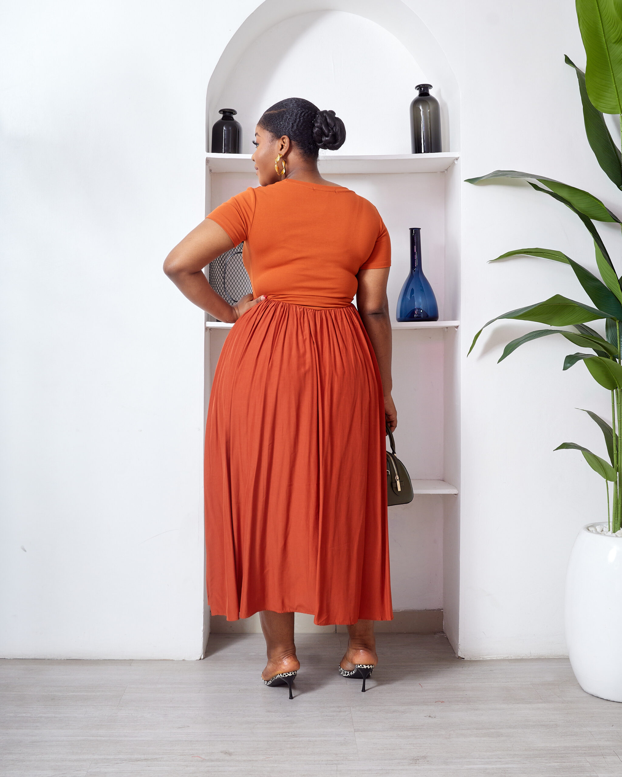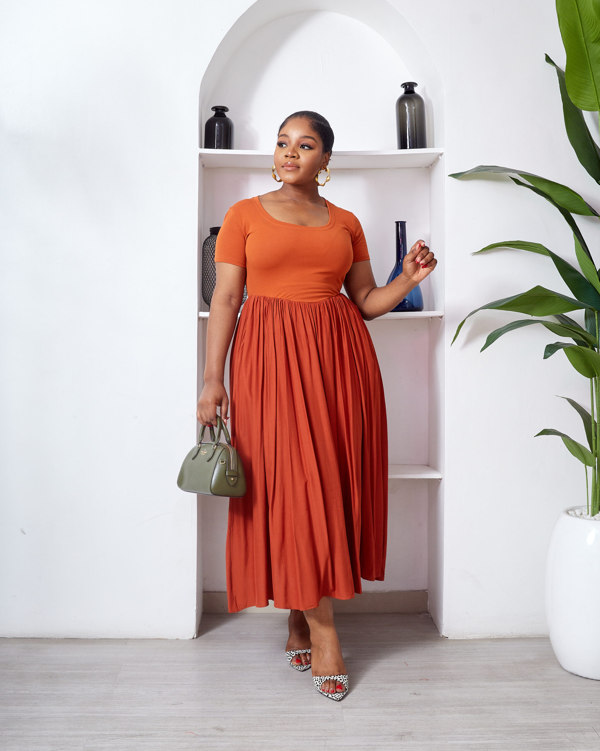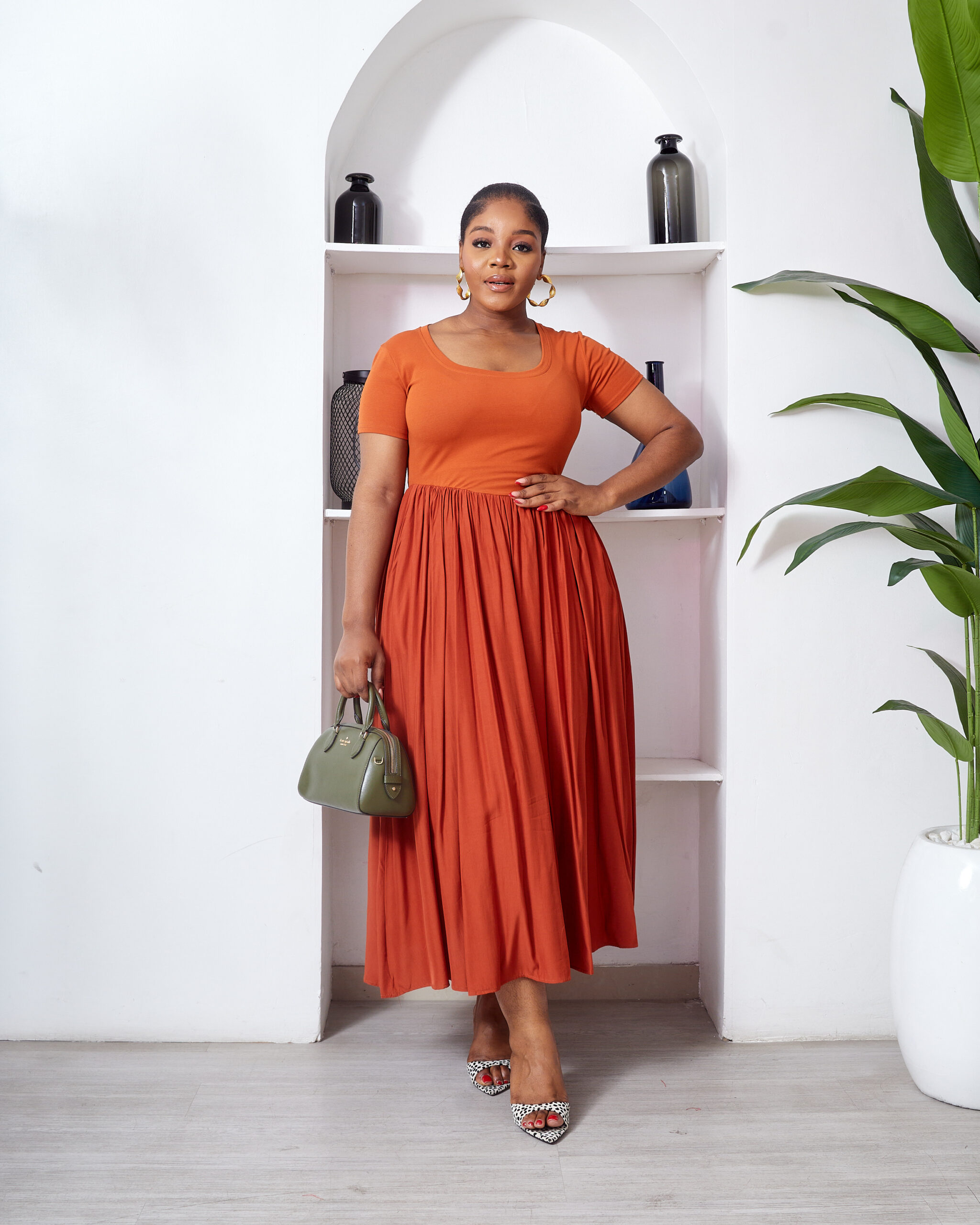POG RUST CAPSLEEVE PINTEREST DOLL MIDI DRESS