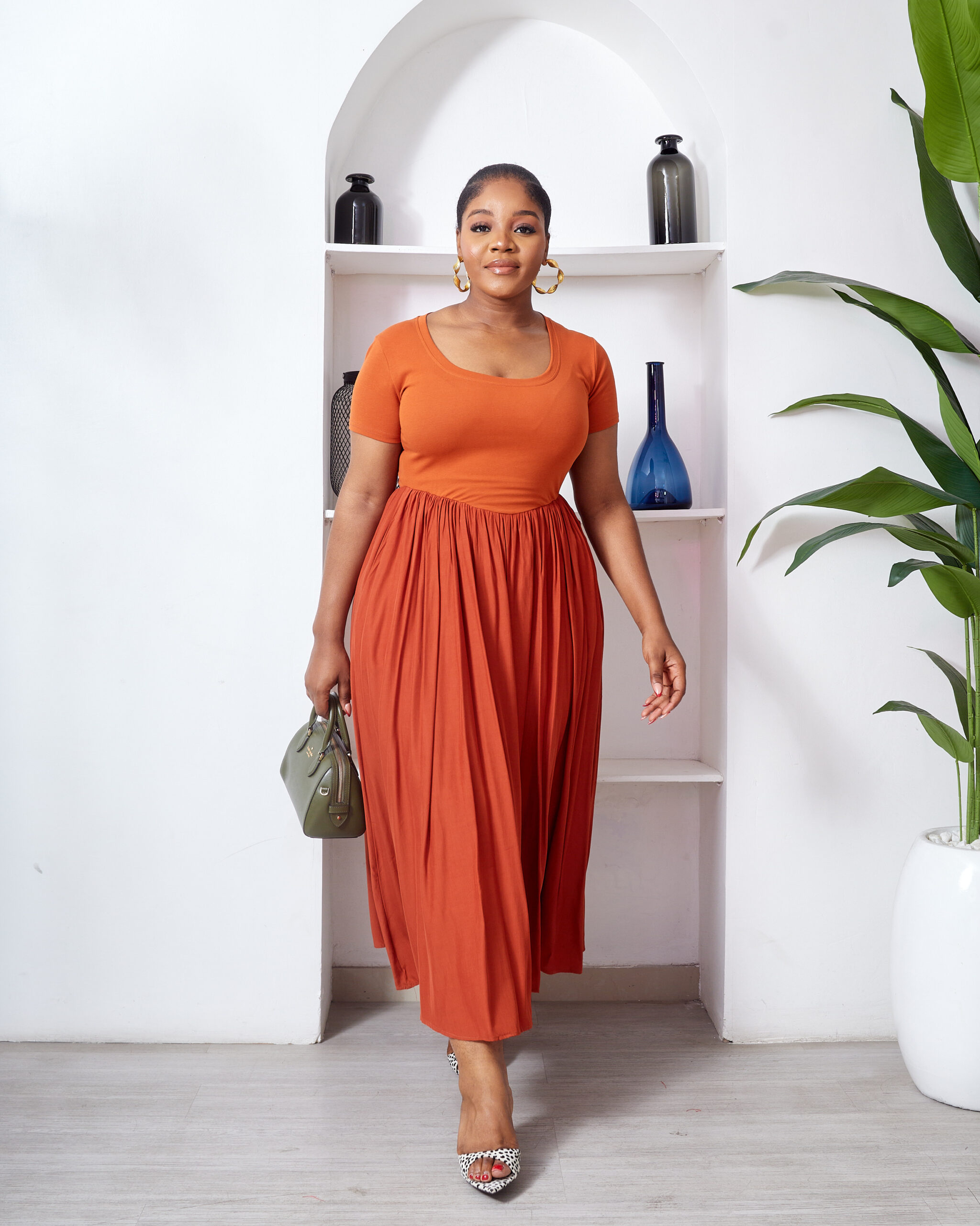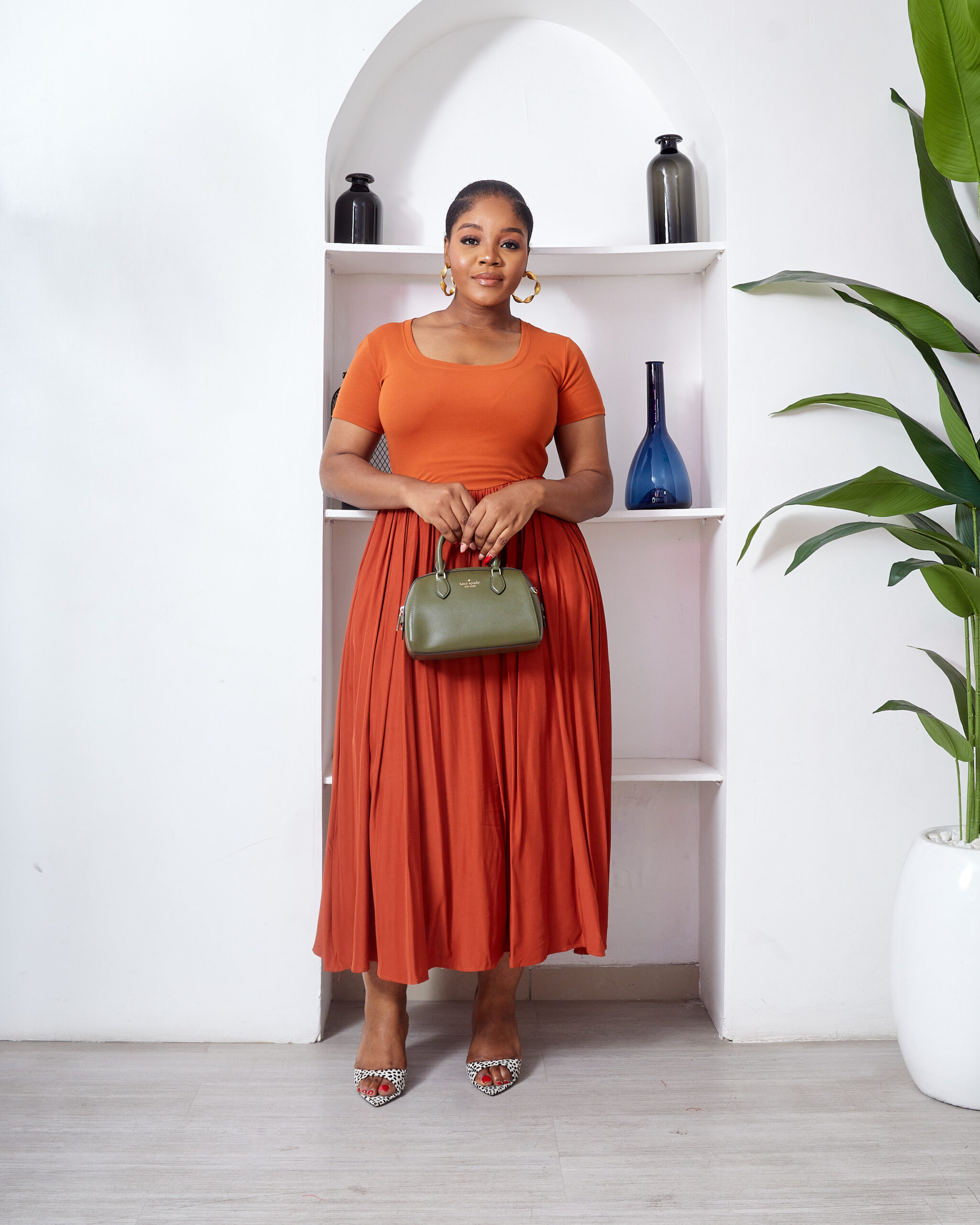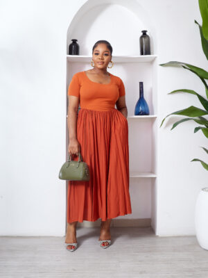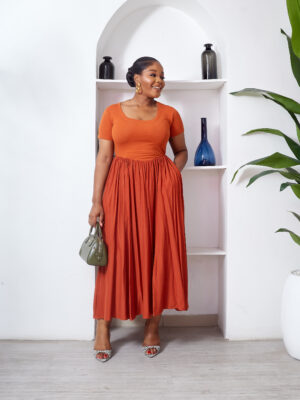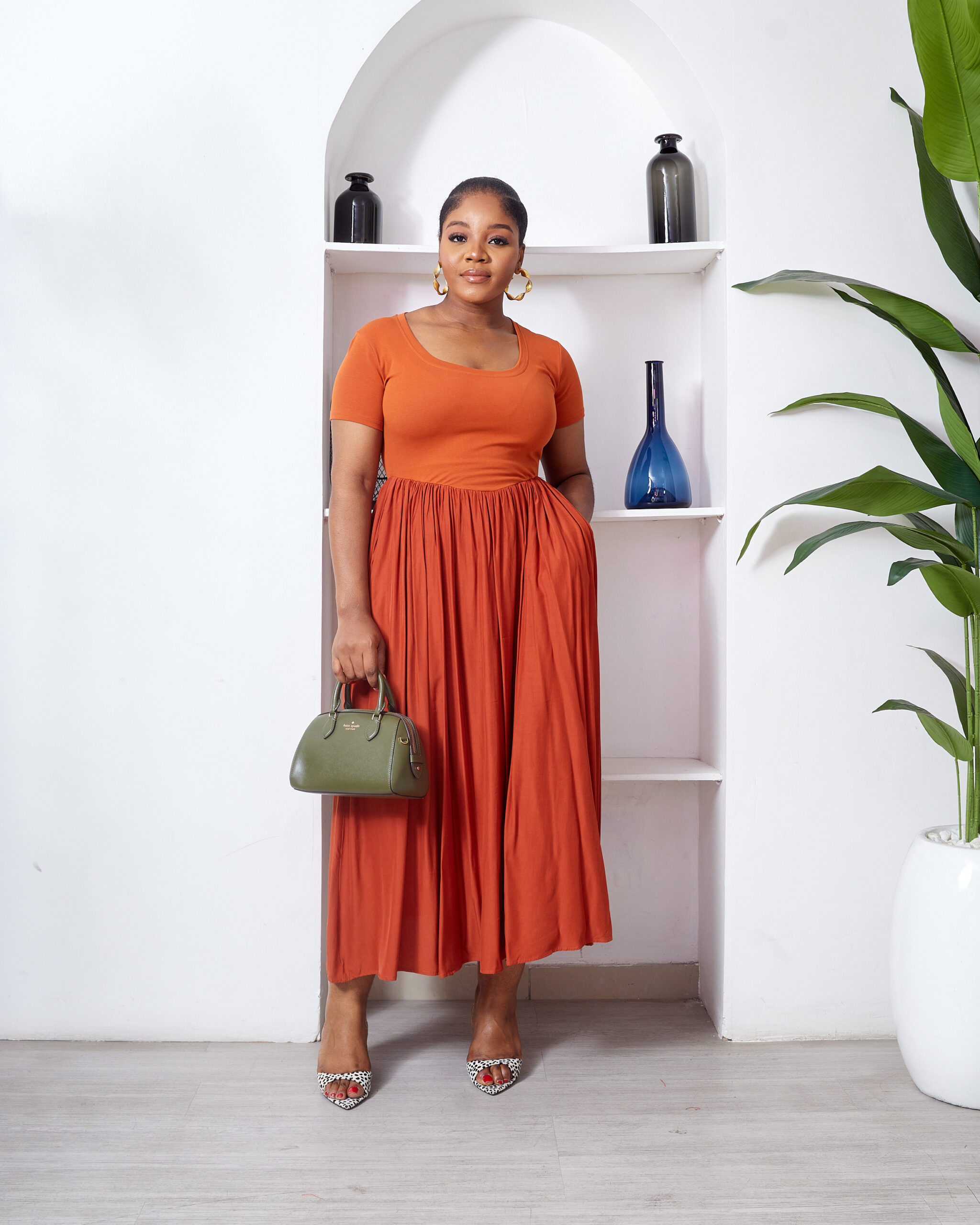 POG RUST CAPSLEEVE PINTEREST DOLL MIDI DRESS