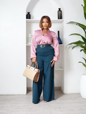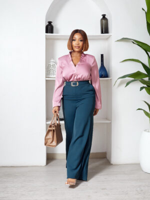 Home Clothing Trousers/Pants (2FOR50K) POG TEAL BIG BUCKLE FLARE PANTS