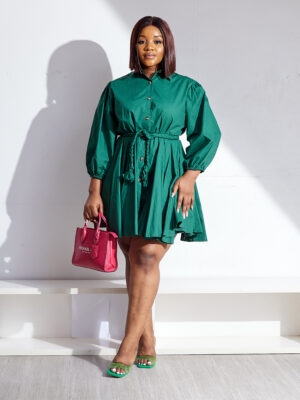 | POG TEAL MULTI SEAM SHIRT DRESS WITH WOVEN BELT |