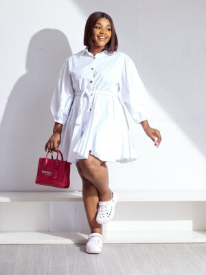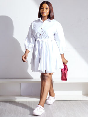 | POG WHITE MULTI SEAM SHIRT DRESS WITH WOVEN BELT |