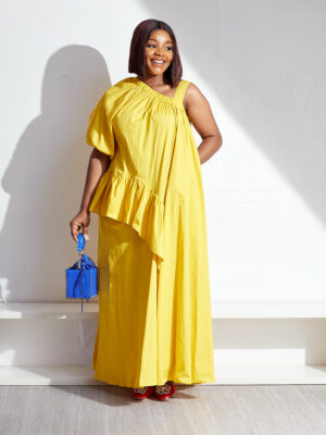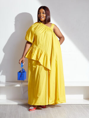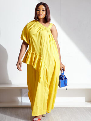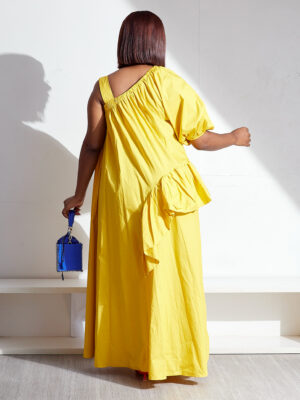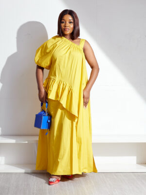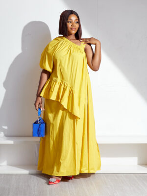 | POG YELLOW IRREGULAR MONO SLEEVES FRILL DETAIL MAXI |