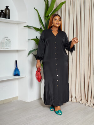 POLE BLACK OSTRICH FEATHER SHIRT DRESS